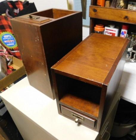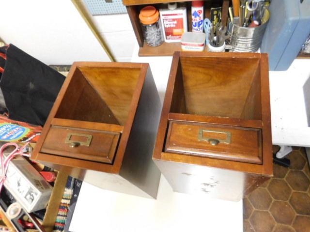 Pair of Vintage Solid Oak Filing Boxes with Catalogue Drawer 15"x10"
