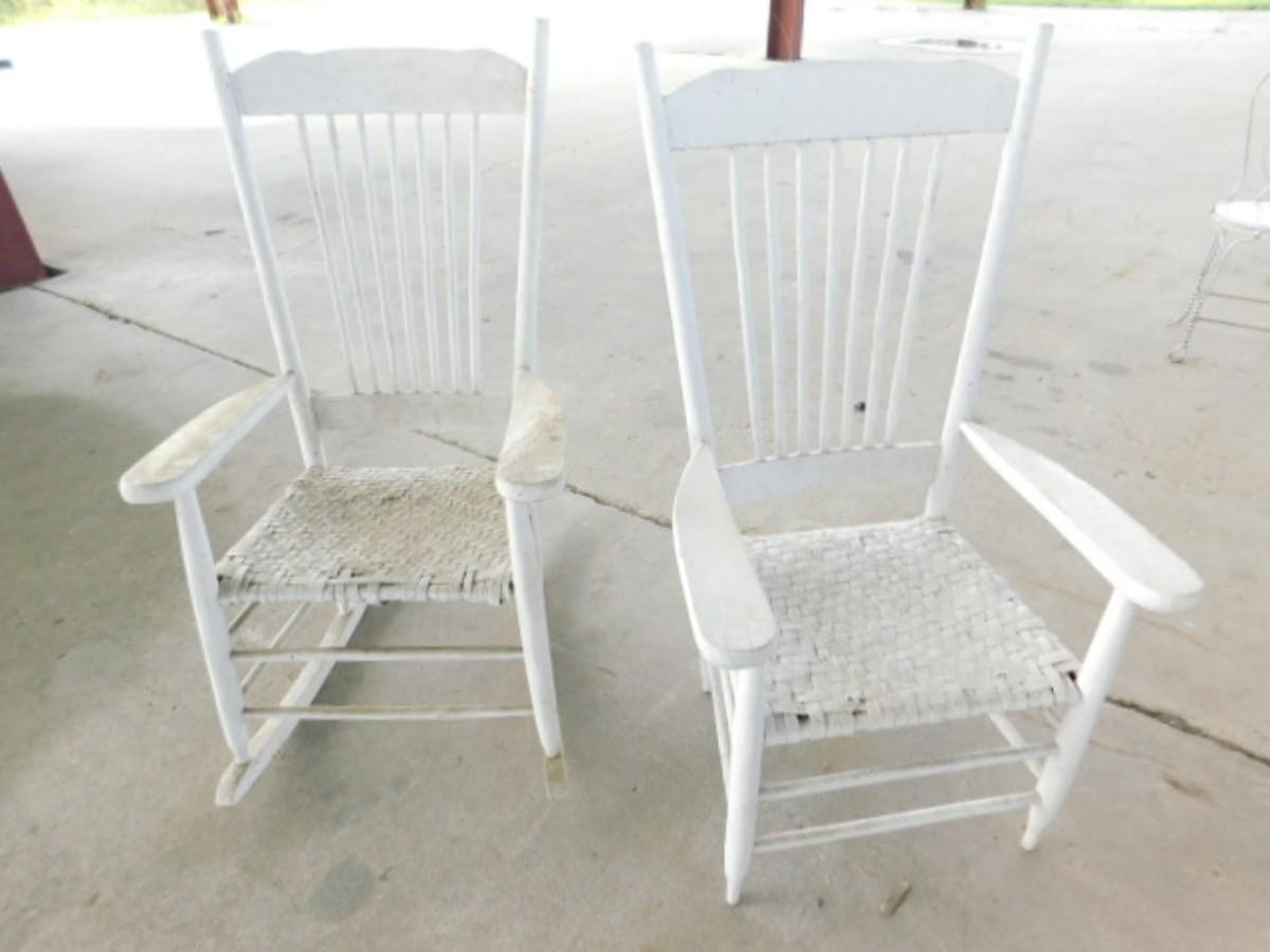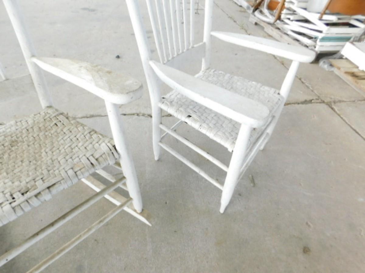 Pair of Vintage Solid Wood Porch Rockers one chair has missing rockers