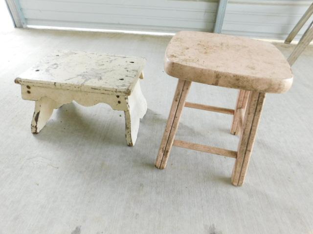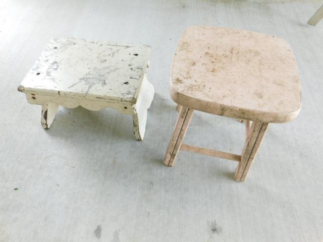 Pair of Vintage Step and Sitting Stools see pics for measurements of each. Paint is faded and chipping.