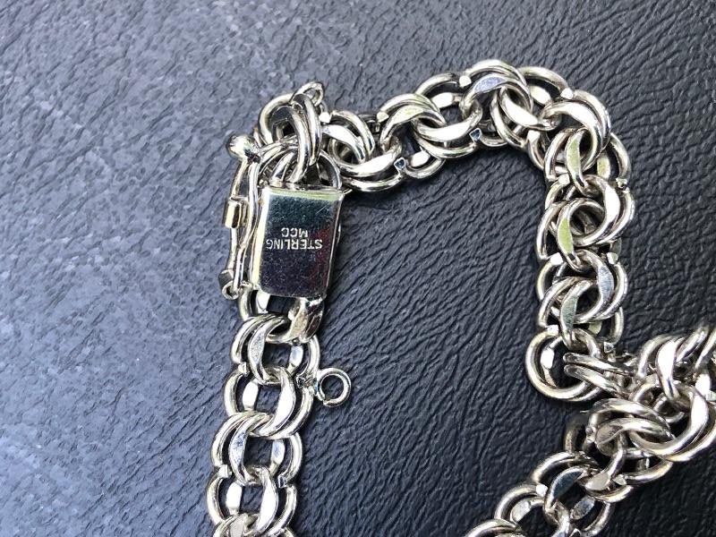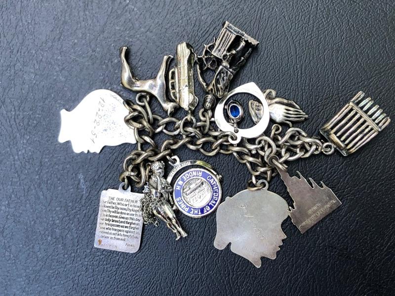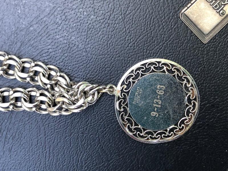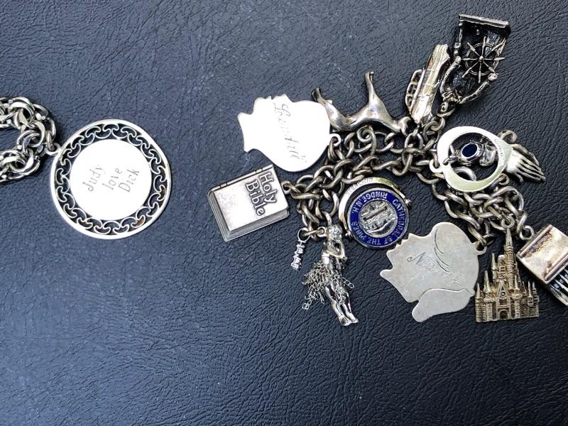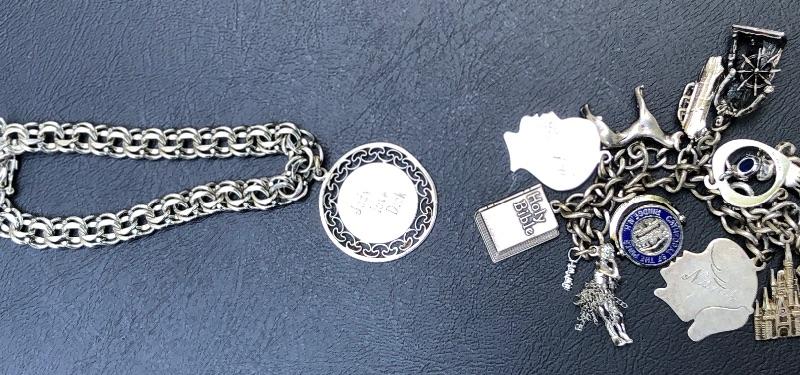 Double Ring Sterling Silver Bracelet with Danecraft Round Inscribed Charm and sterling Silver 12 Charm Vintage Bracelet