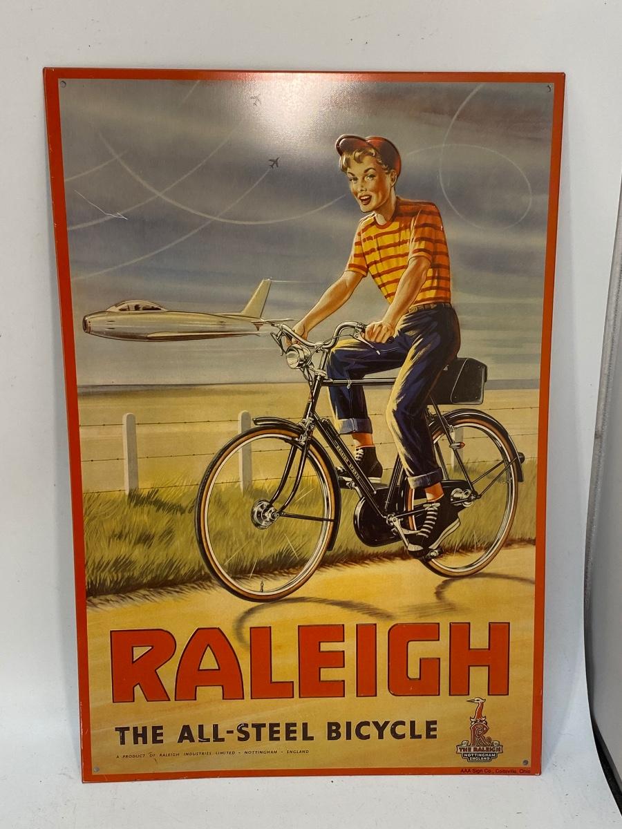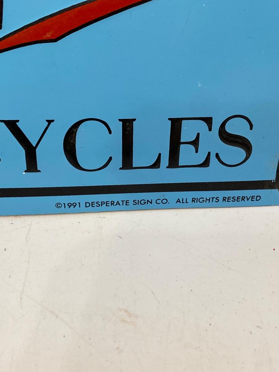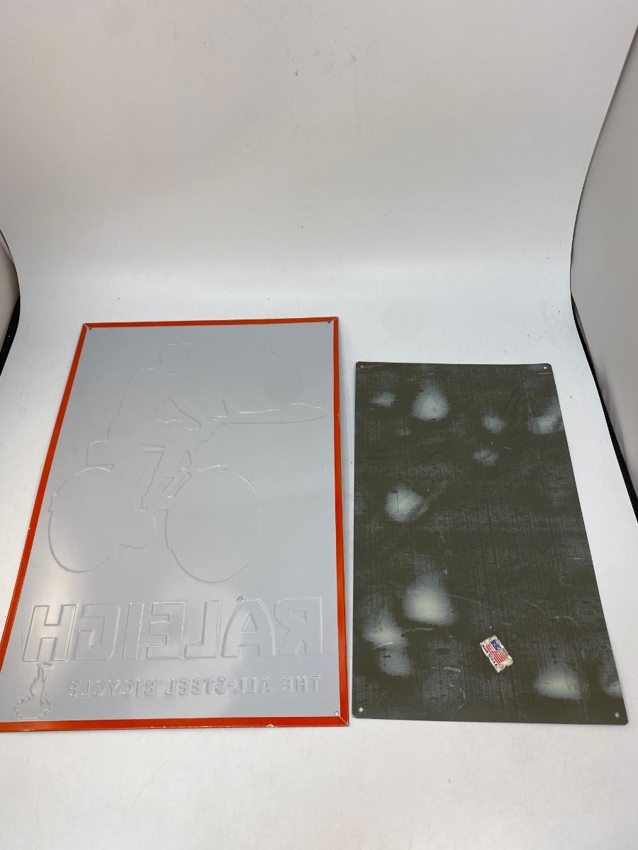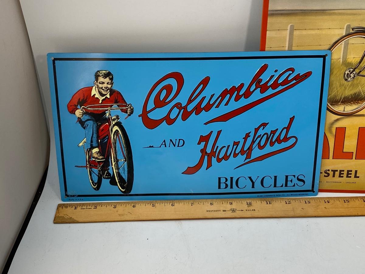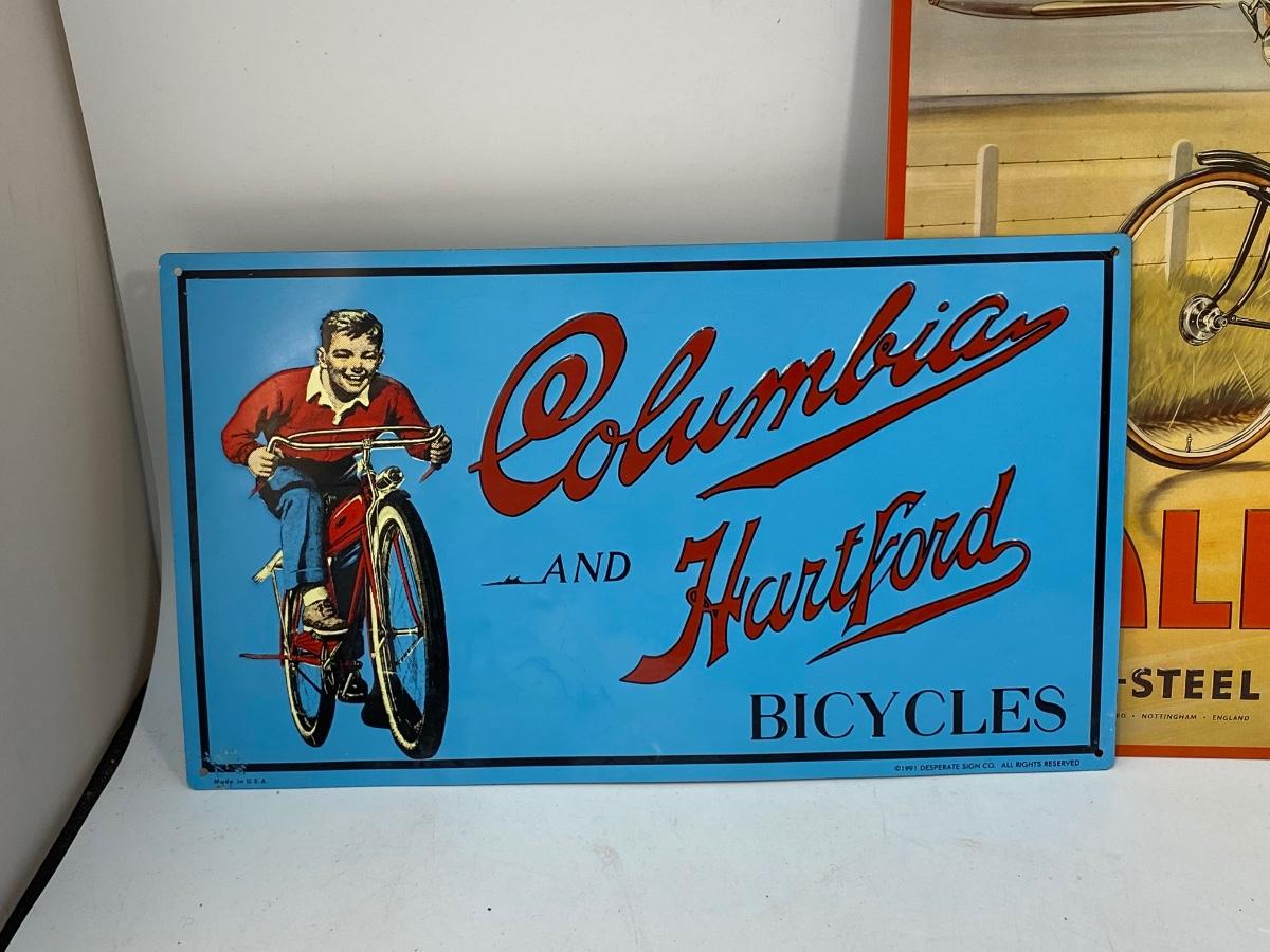 Pair of Vintage Style Reproduction Bicycle Company Metal Signs. In good condition. Small holes in corners for hanging.