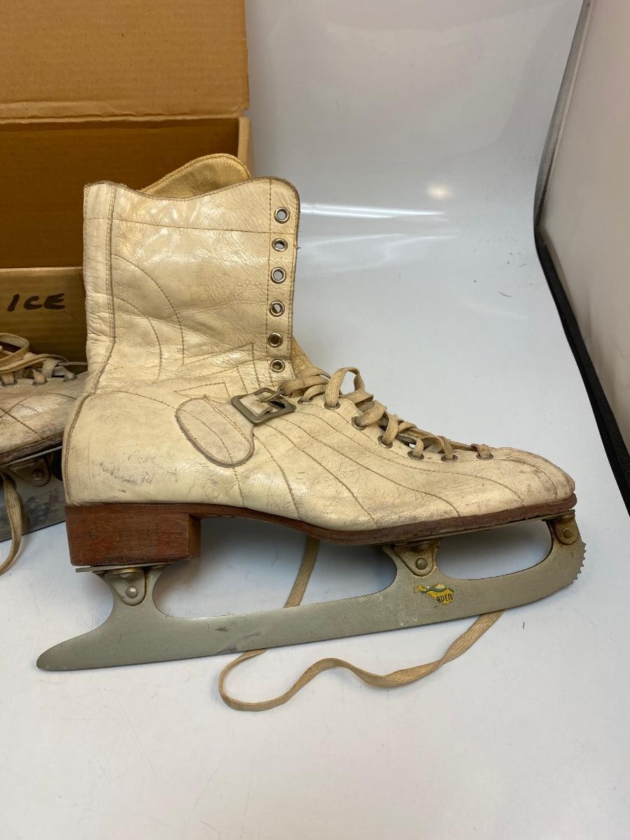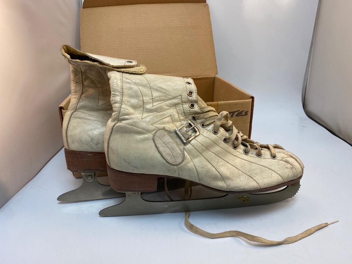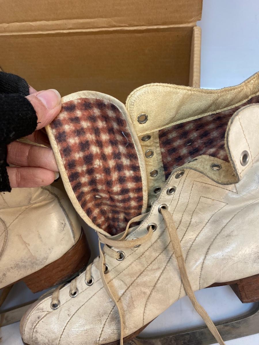 There is some vintage wear to the skates, but there is no significant damage and is in overall good collectible or wearable condition. Check pictures for more details and for sizing.