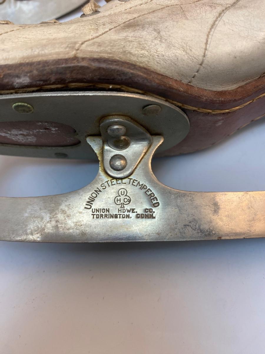Pair of Vintage Union Steel Tempered Union HDWE. Co. Steel Shank Size 7 Ice Skates
