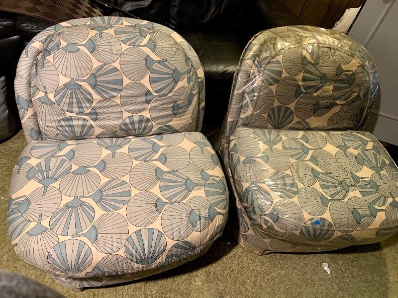 Pair of Vintage Upholstered Shell Pattern Chairs