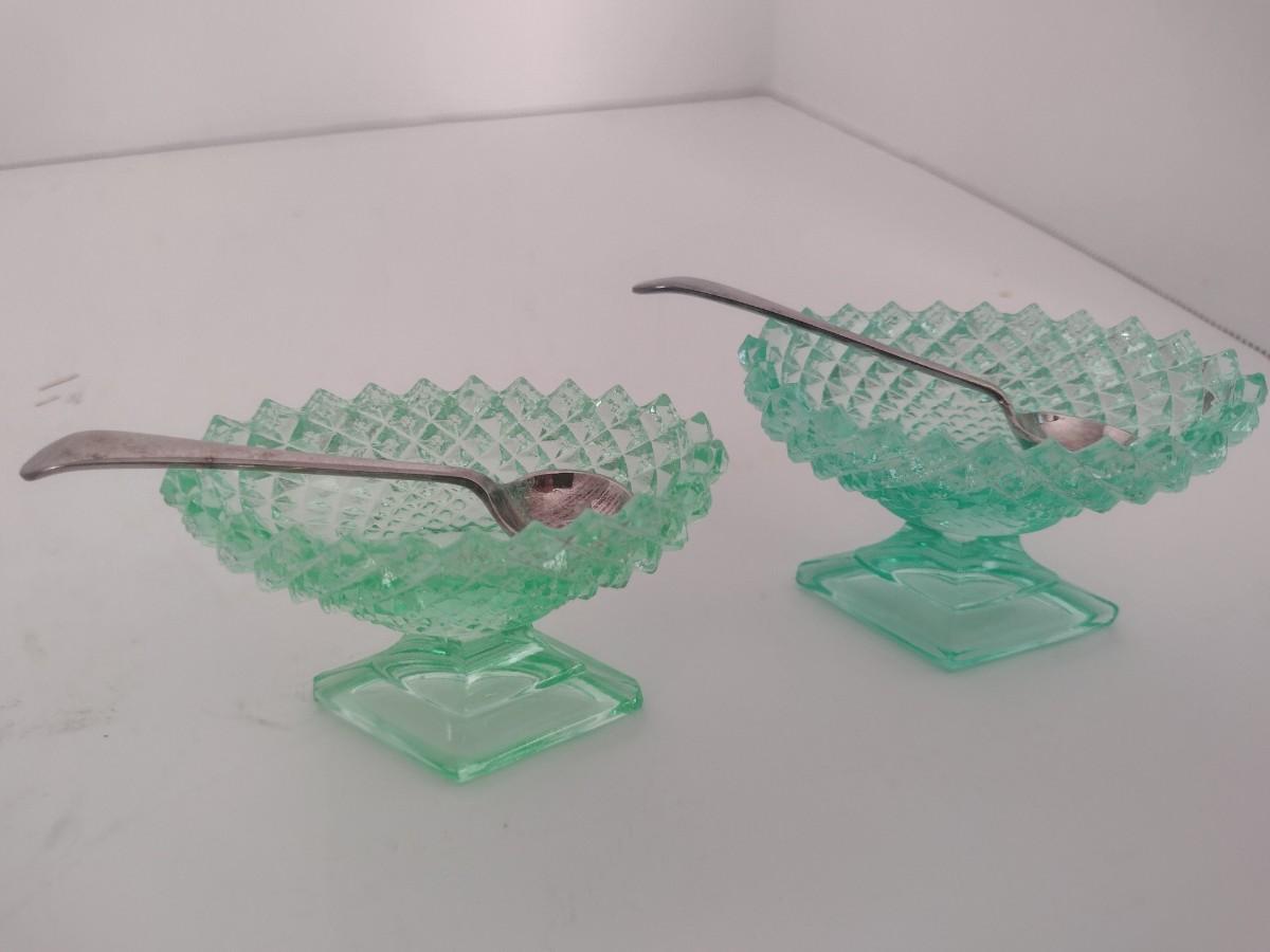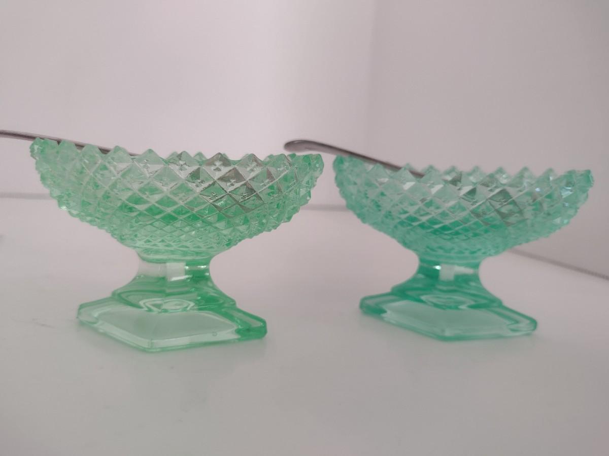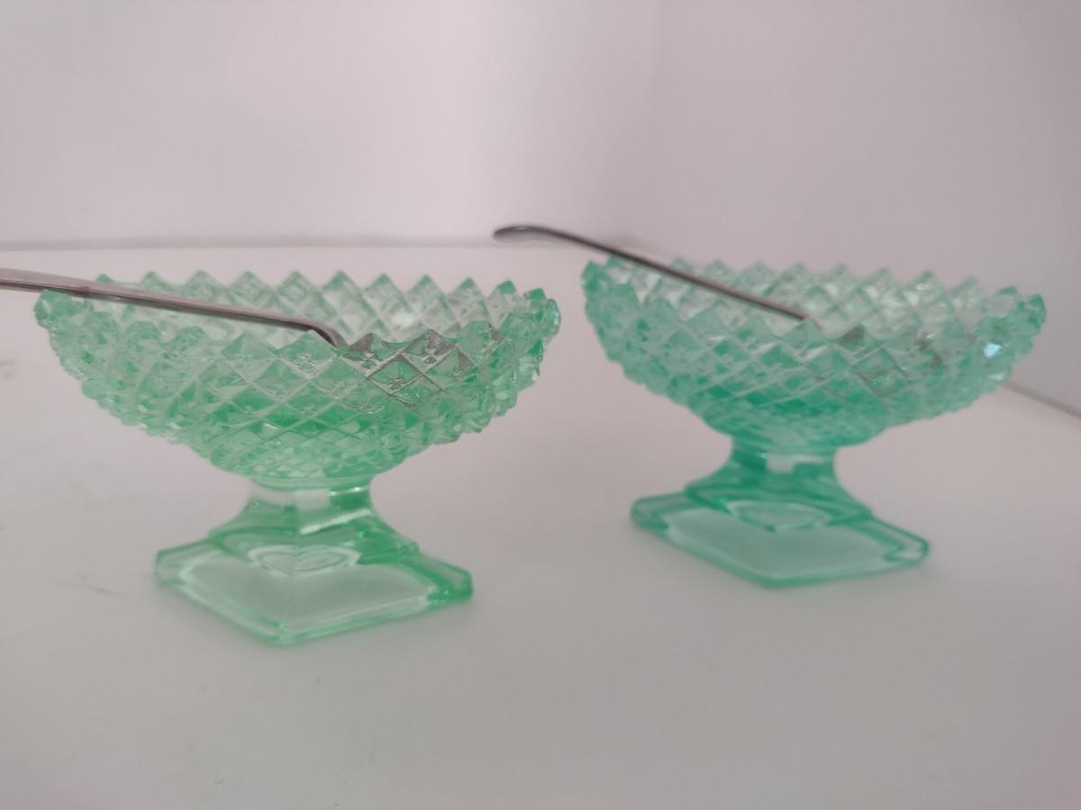 Pair of Vintage Uranium Glass Salt Sellers