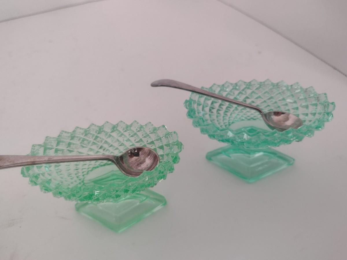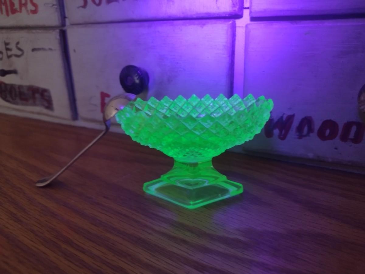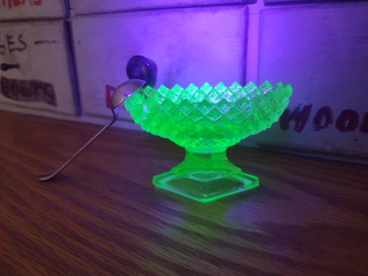 Pair of Vintage Uranium Glass Salt Sellers