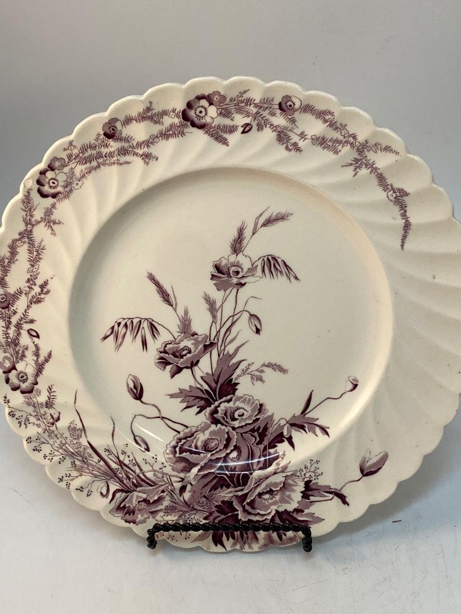 Pair of Vintage Violet Purple Floral Pattern Decorated Plates. Beautiful flower designs. Both have maker marks on back. May have crazing from age.