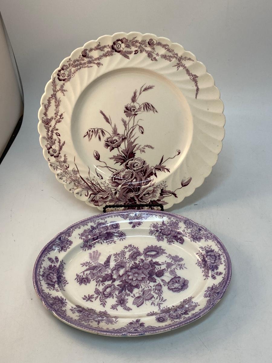 Pair of Vintage Violet Purple Floral Pattern Decorated Plates