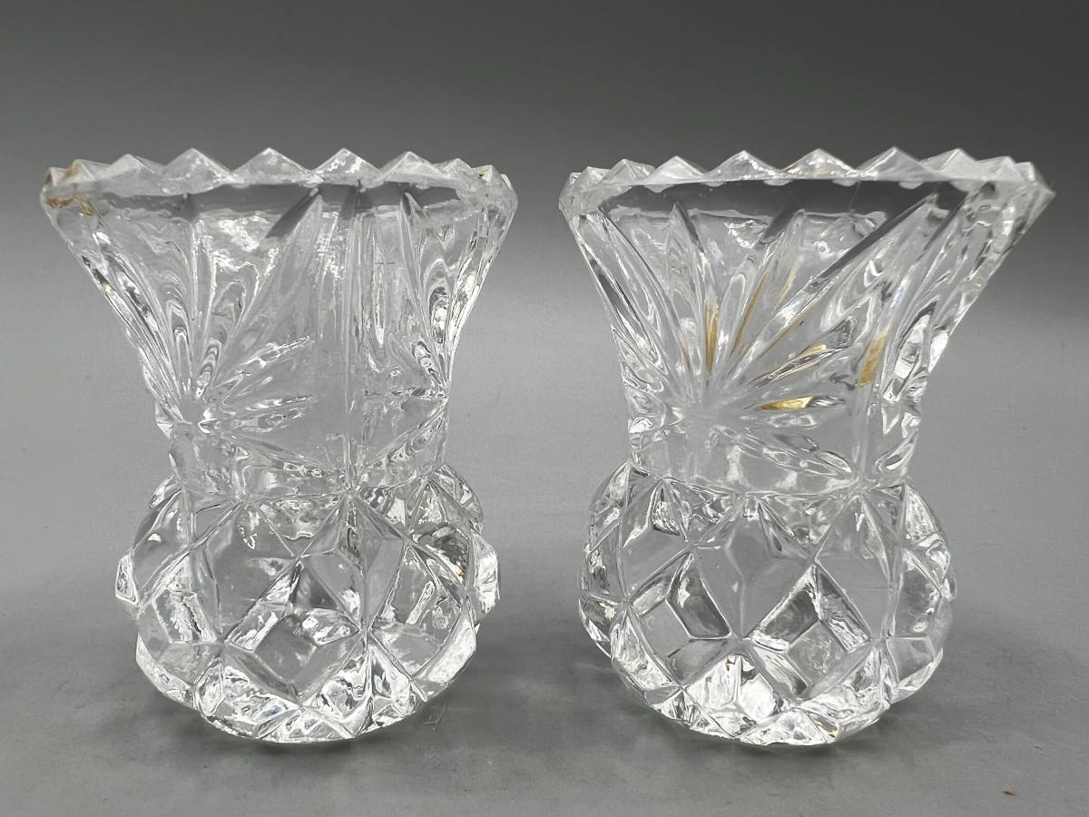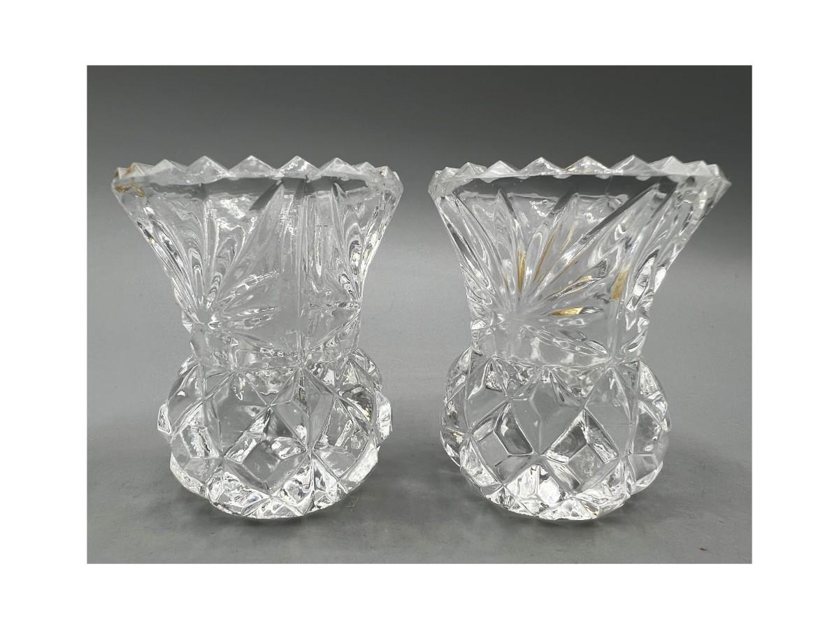 Pair of Vintage Western German Crystal Glass Candle Stick Holders