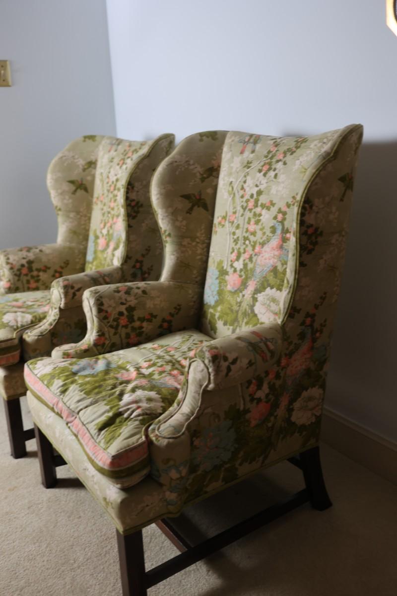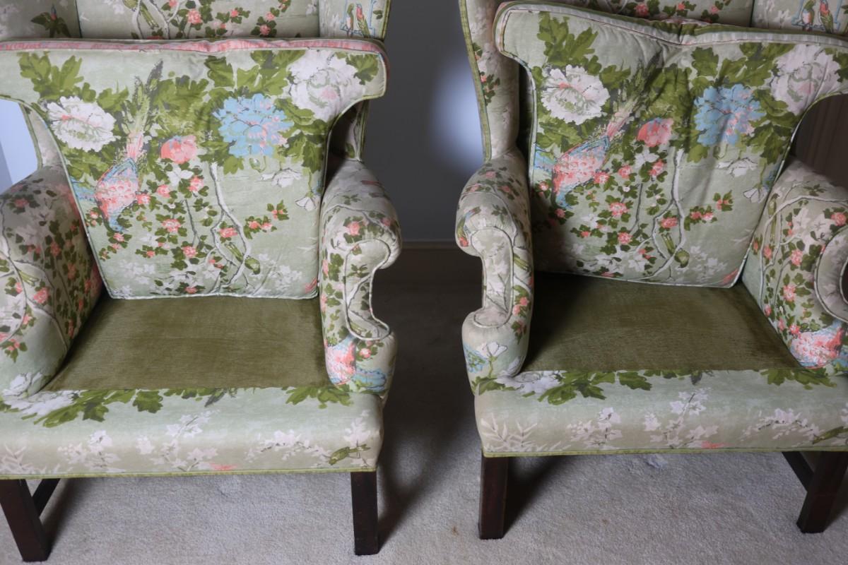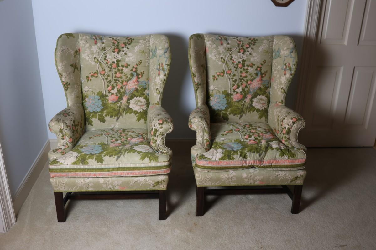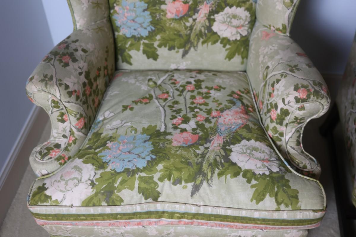 Pair of Vintage Wing Chairs in Floral Upholstery