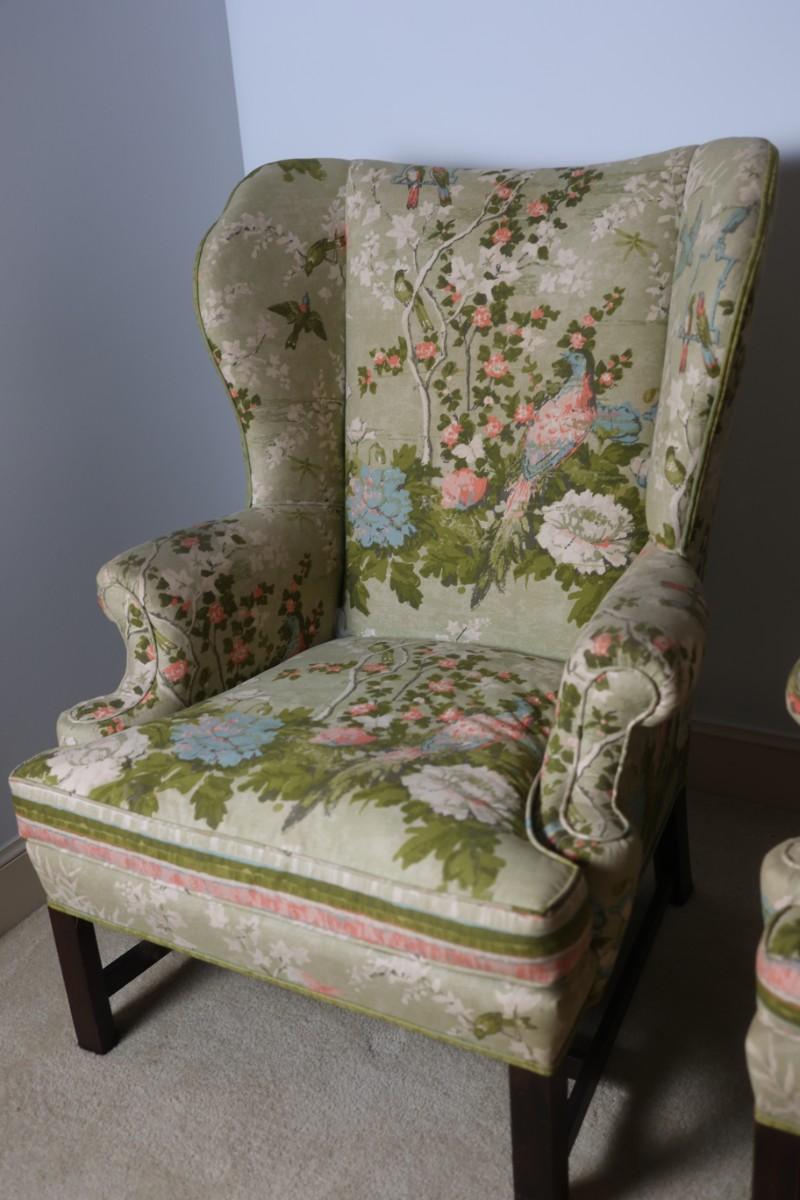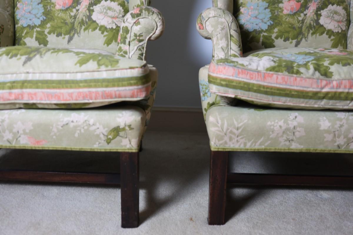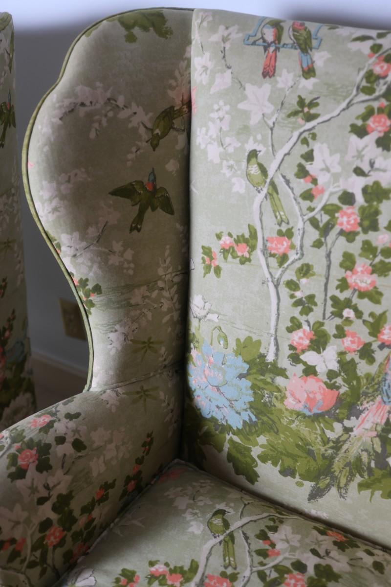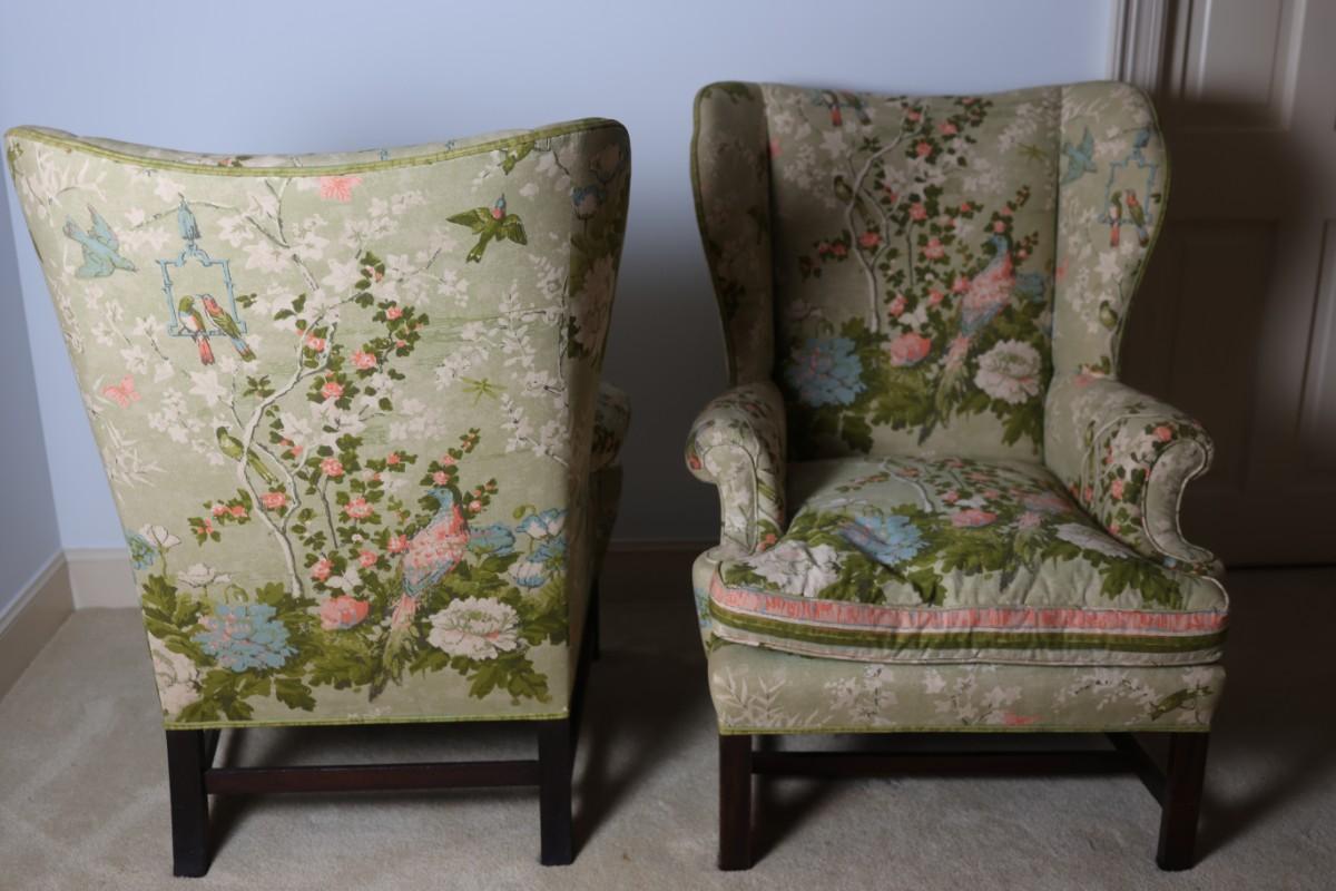 Pair of Vintage Wing Chairs in Floral Upholstery