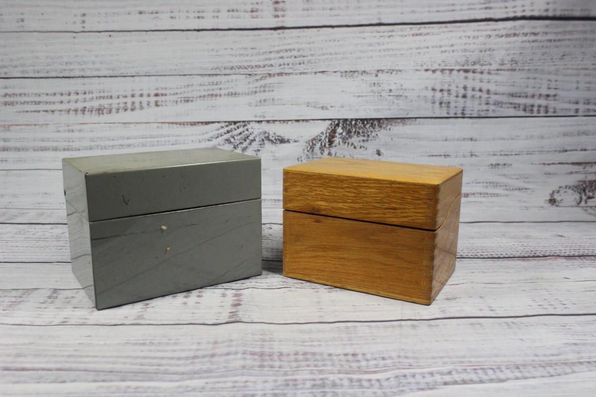 Pair of Vintage Wood and Metal Index Card File Organizers