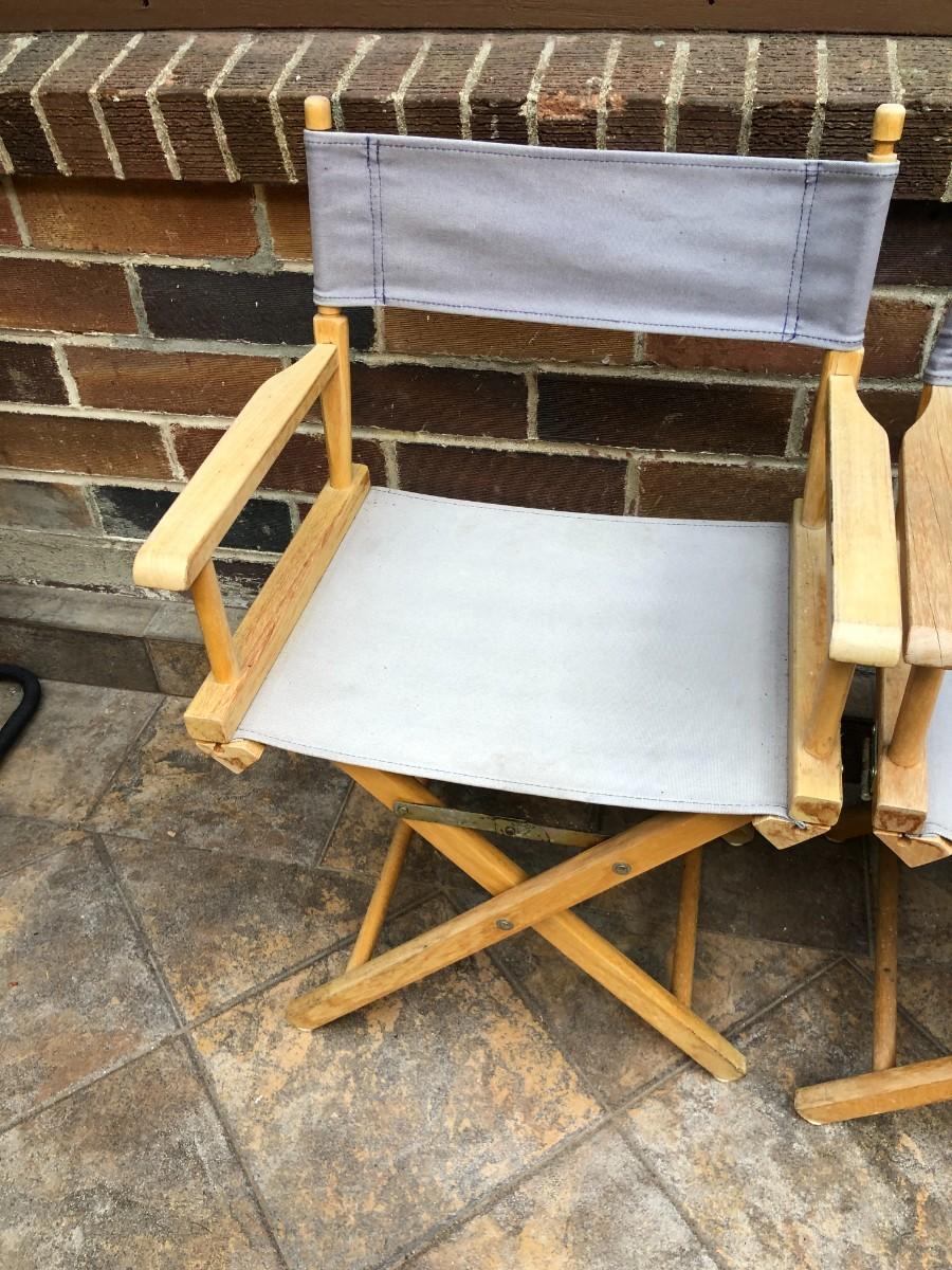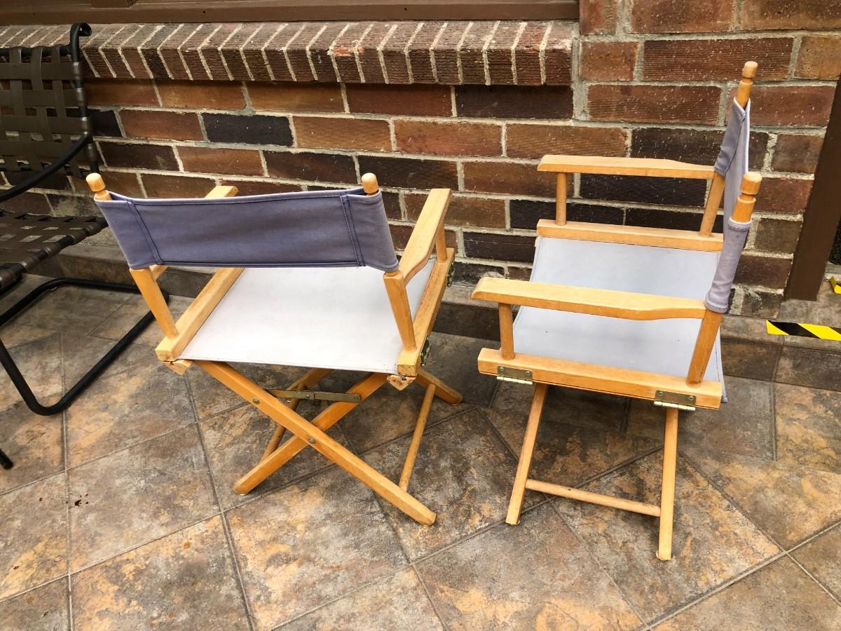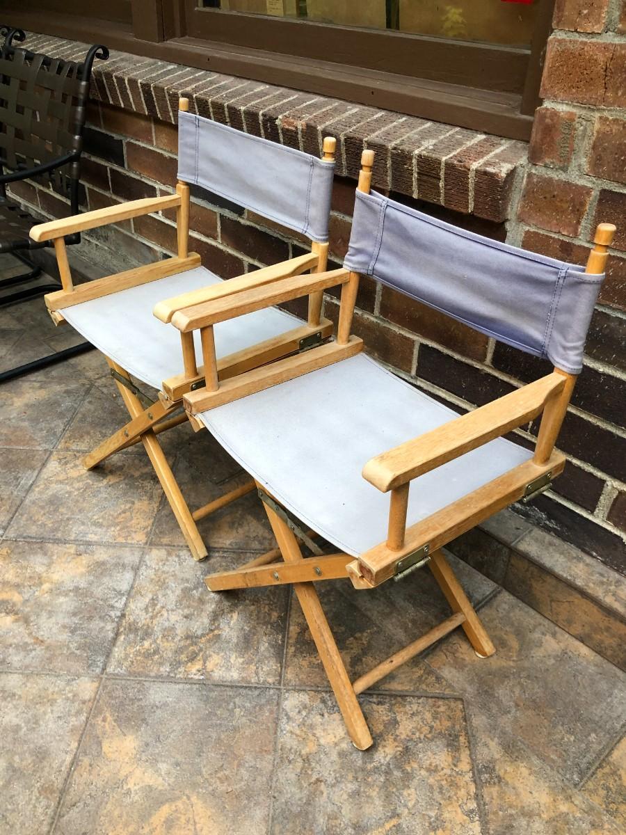 Pair of Vintage Wood and Blue Fabric Director Chairs