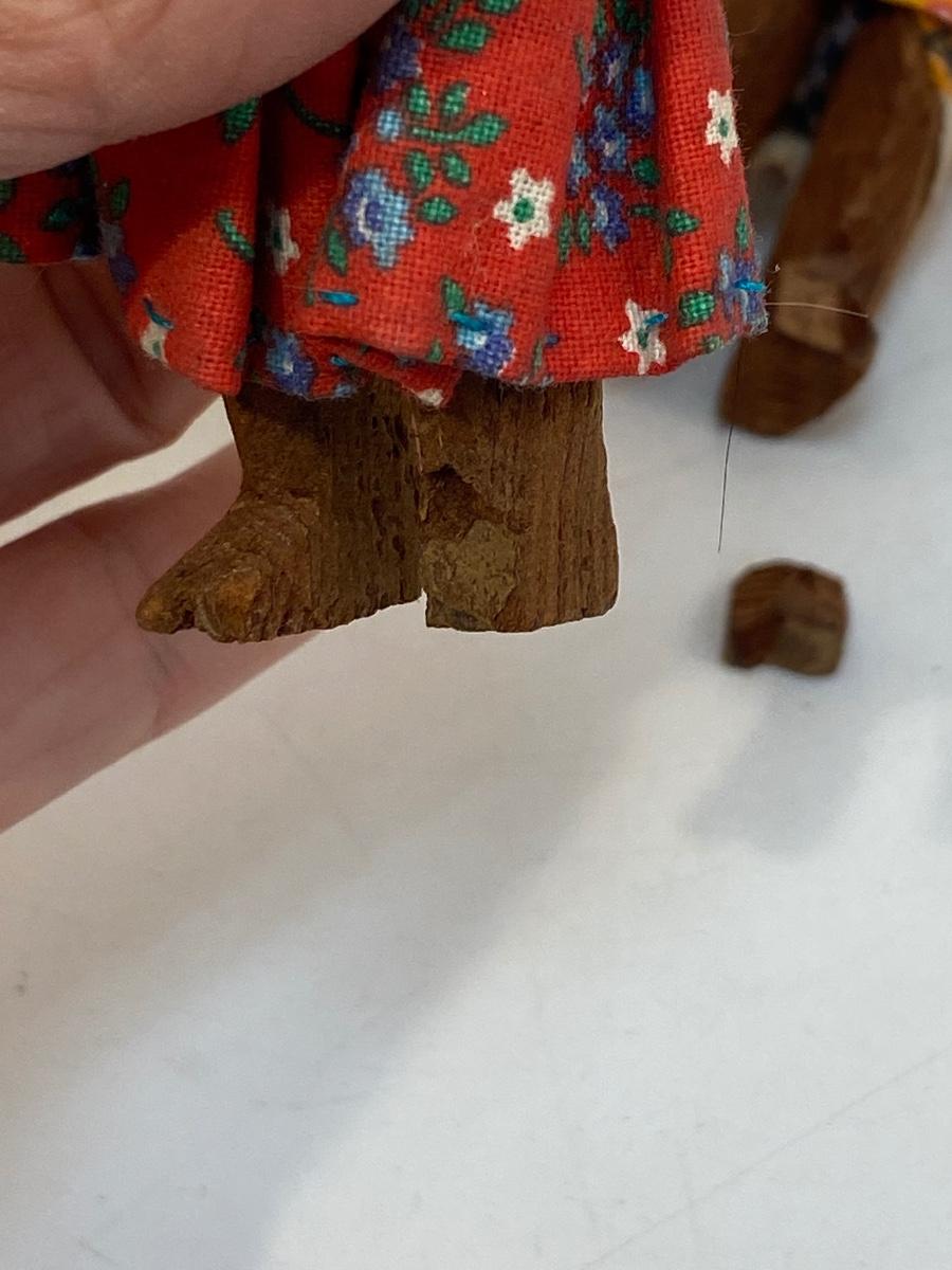 Pair of Vintage Wood Ethnic Folk Art Figurines. One has a damaged foot. A bit worn from age.