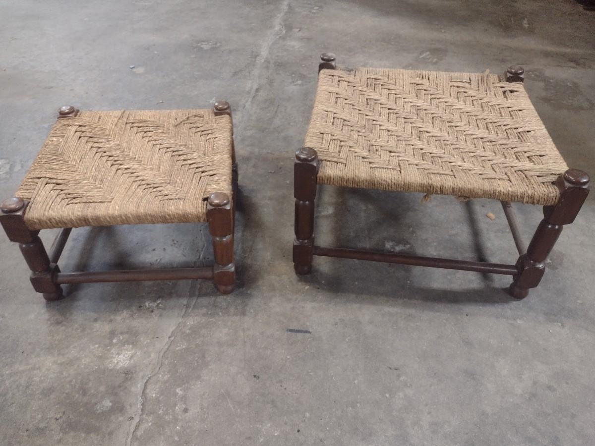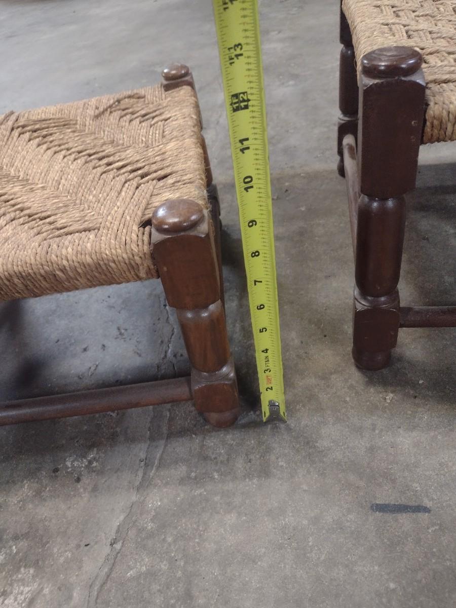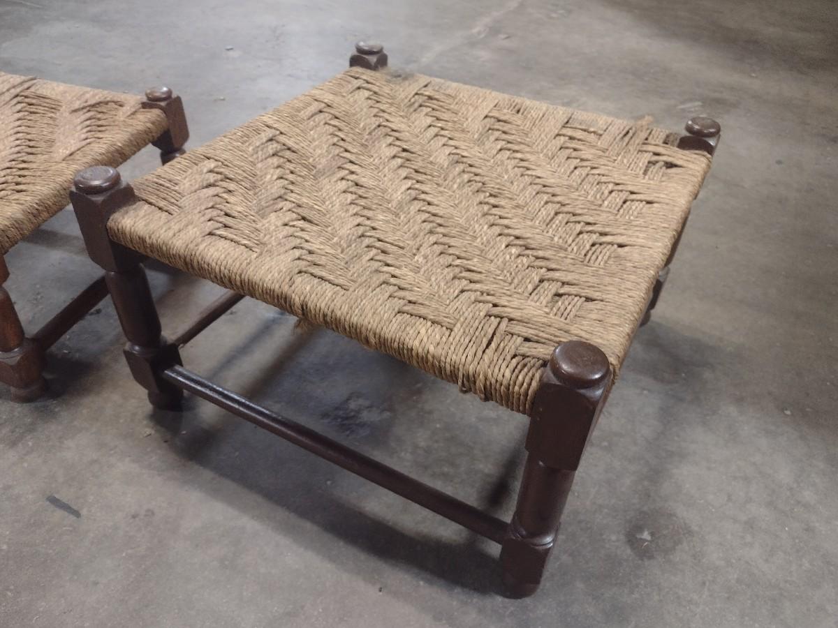 Pair of Vintage Wood Framed Jute Weave Foot Stools