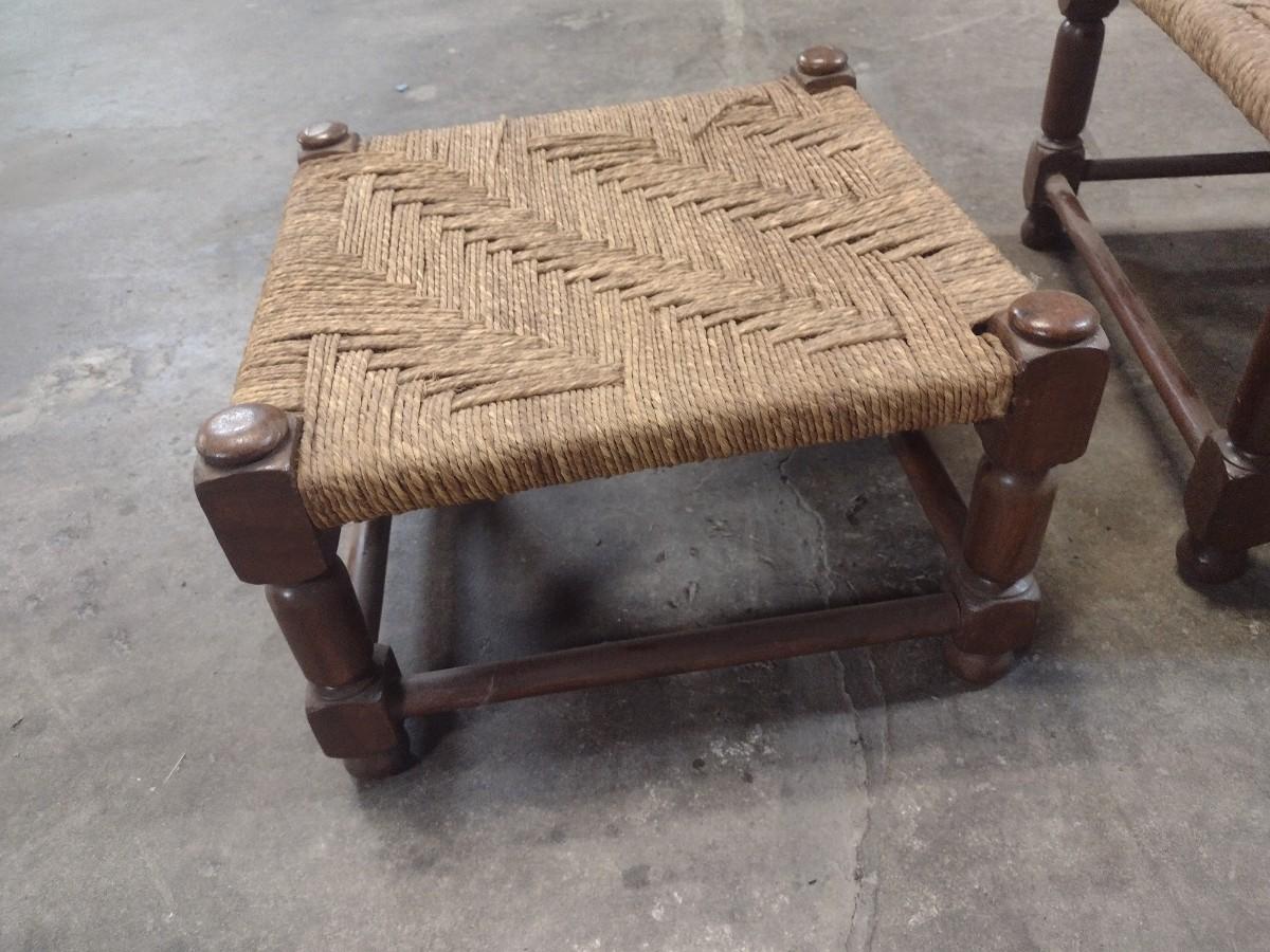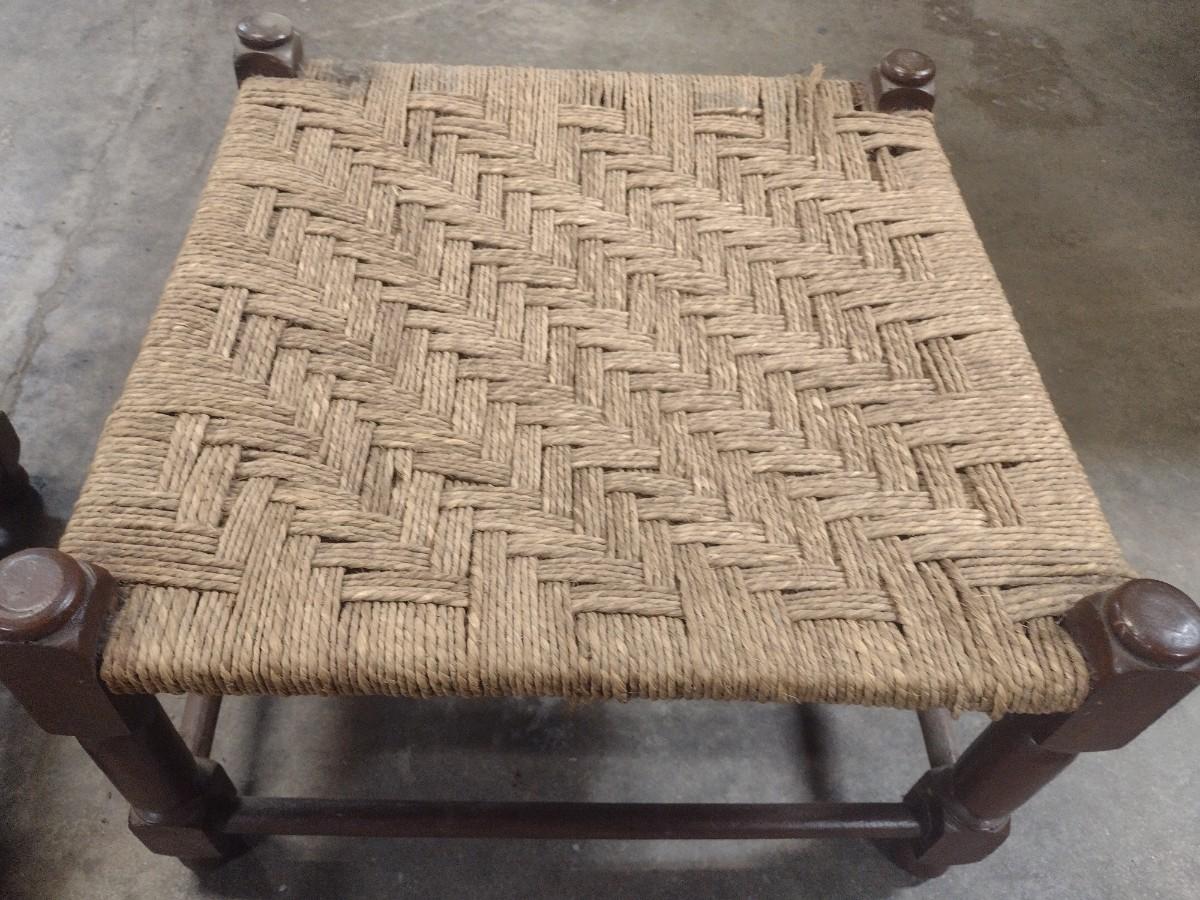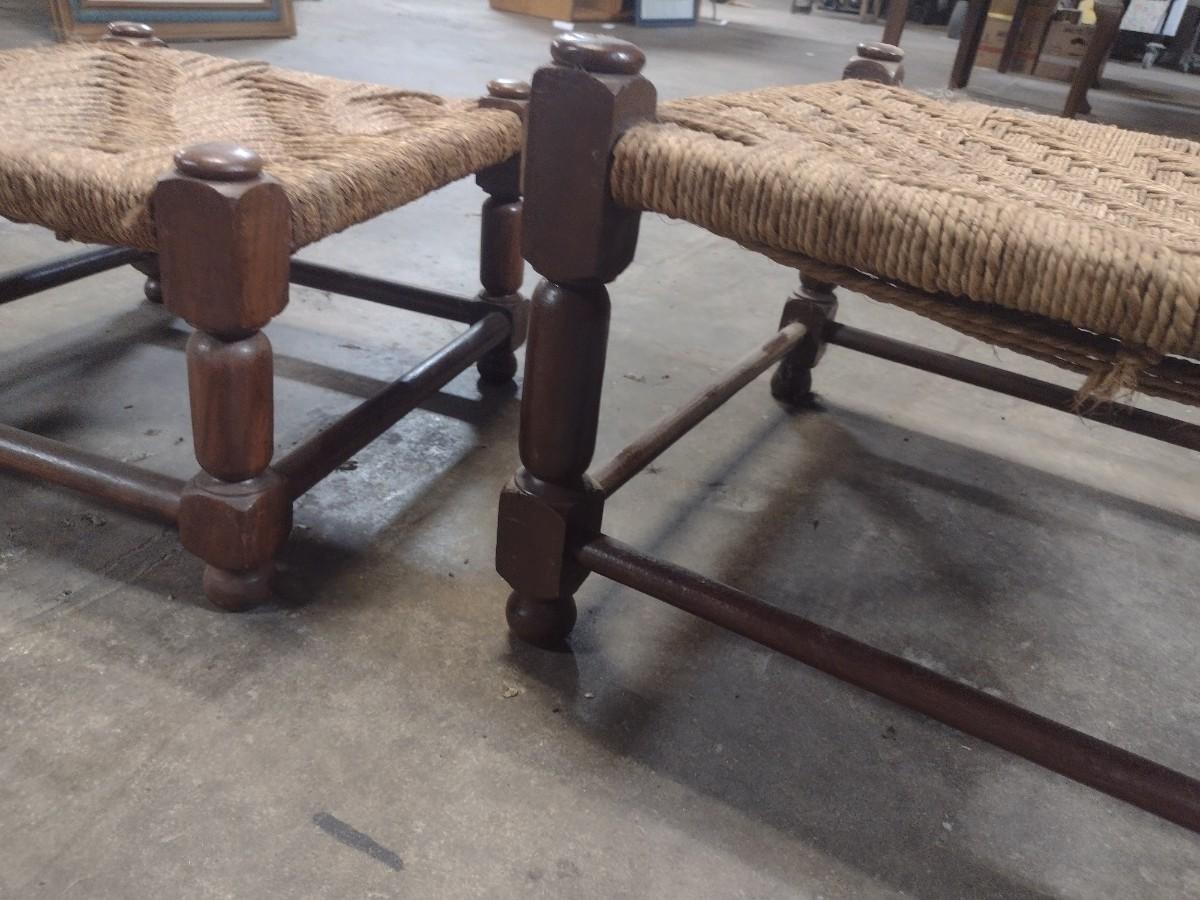 Pair of Vintage Wood Framed Jute Weave Foot Stools