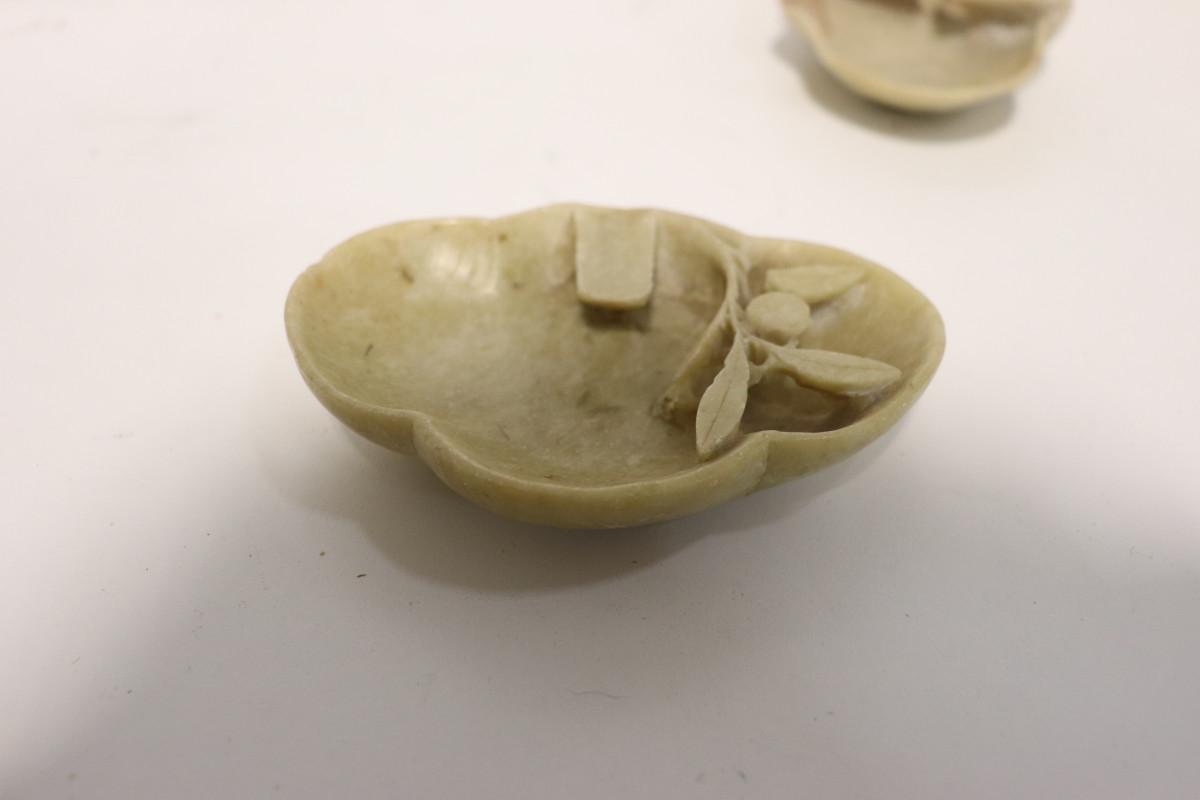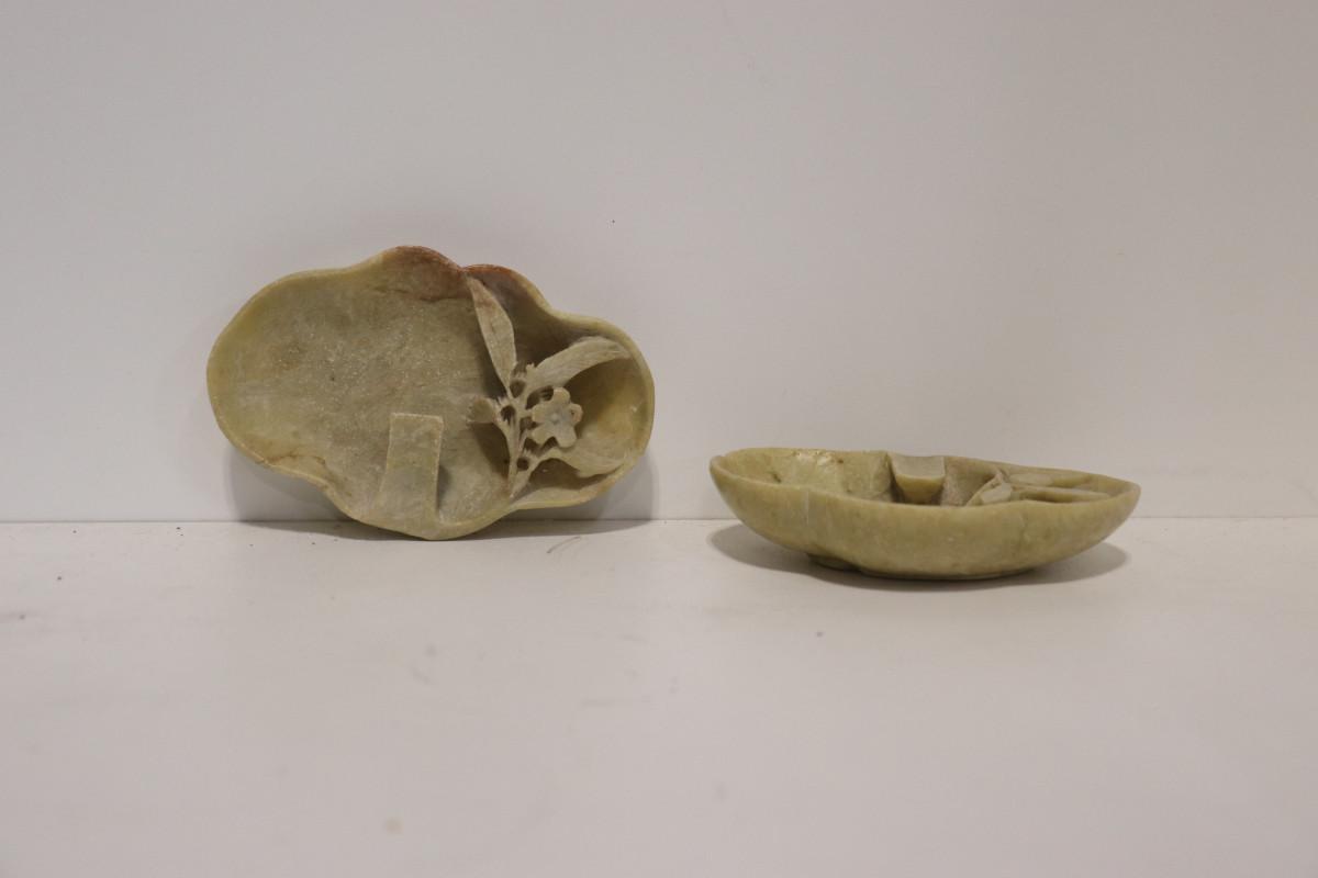 Pair of Vtg Soapstone Trinket Tray or Display Piece Carved Peach Branch
