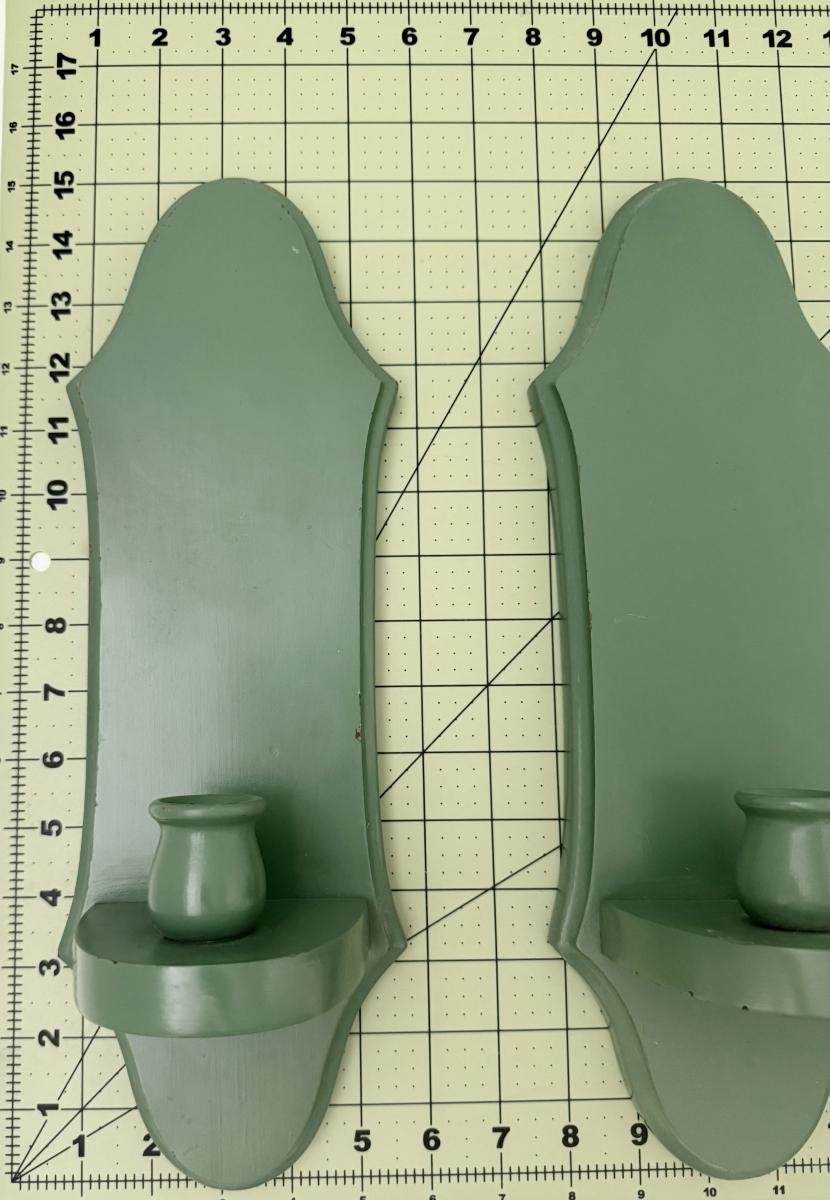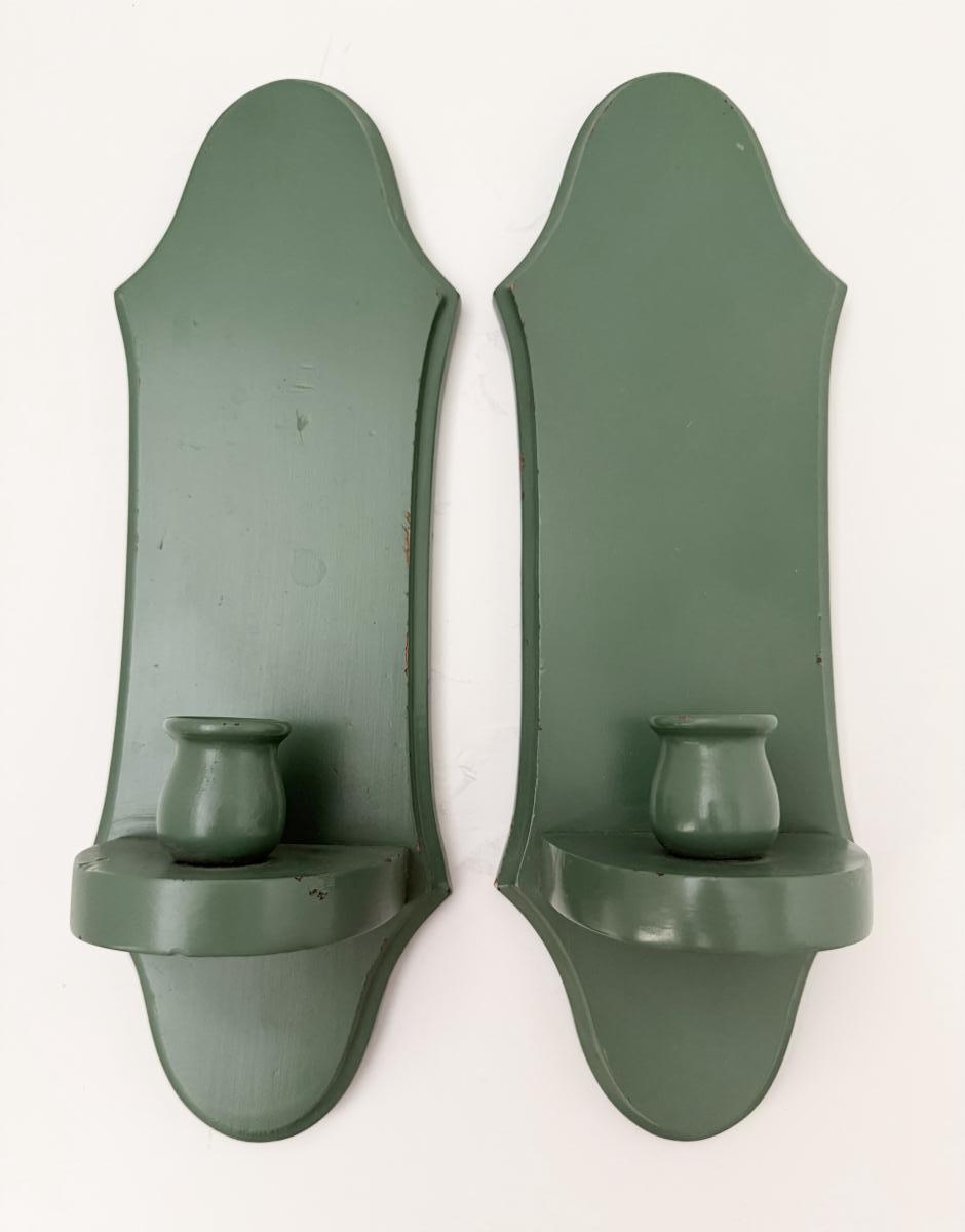 Set of 2 wood wall sconces/candle holders. Green siege