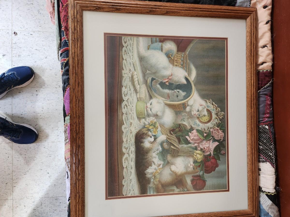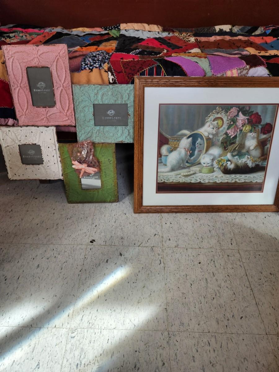 Cute framed kitten print and a metal picture frame piece that is brand new