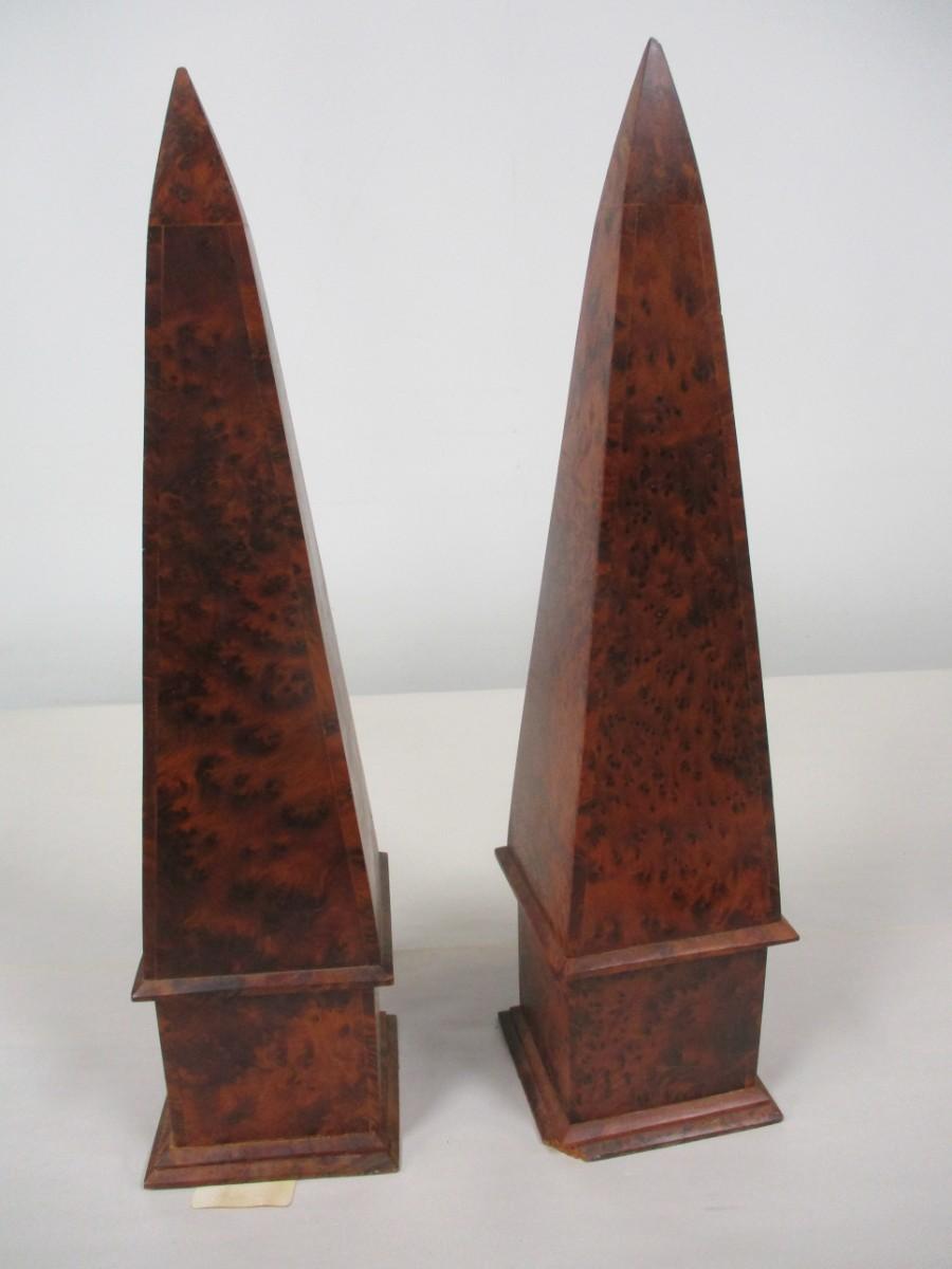 Pair Of Walnut Burr Obelisks