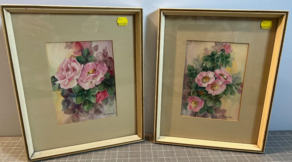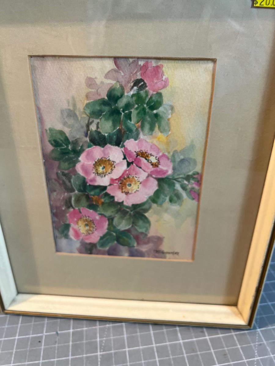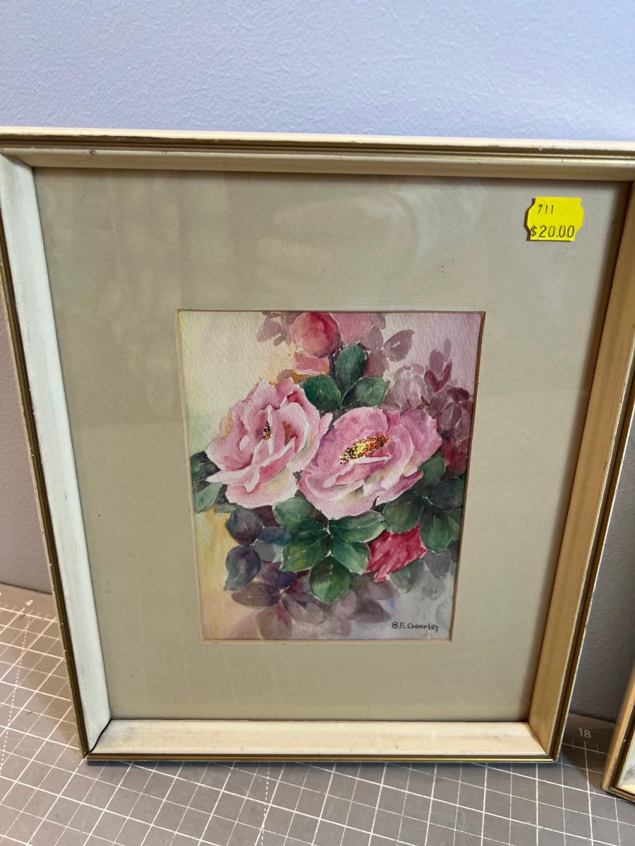 Pair of Water Color Roses, Original, Framed under Glass