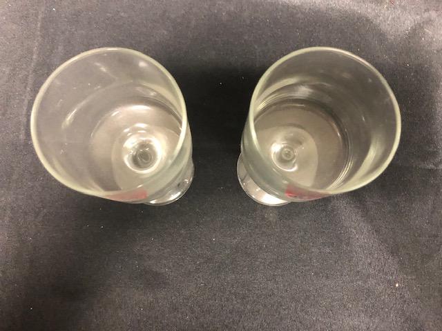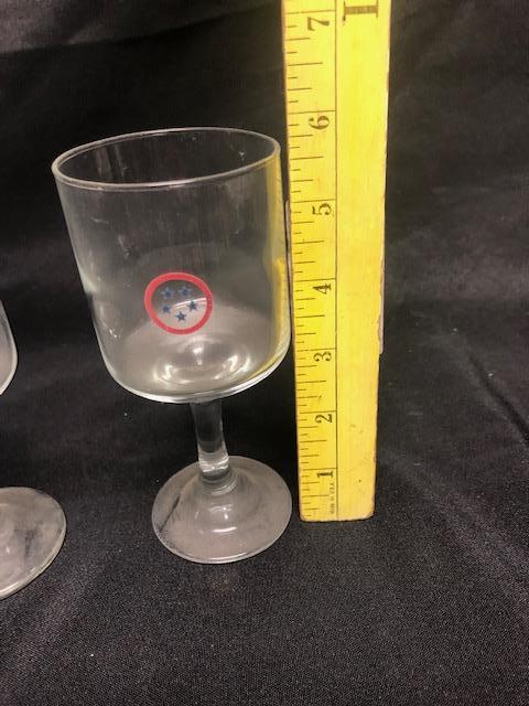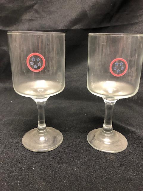 Pair of Water Glasses Wine Goblets Blue Stars in Red Circle Logo