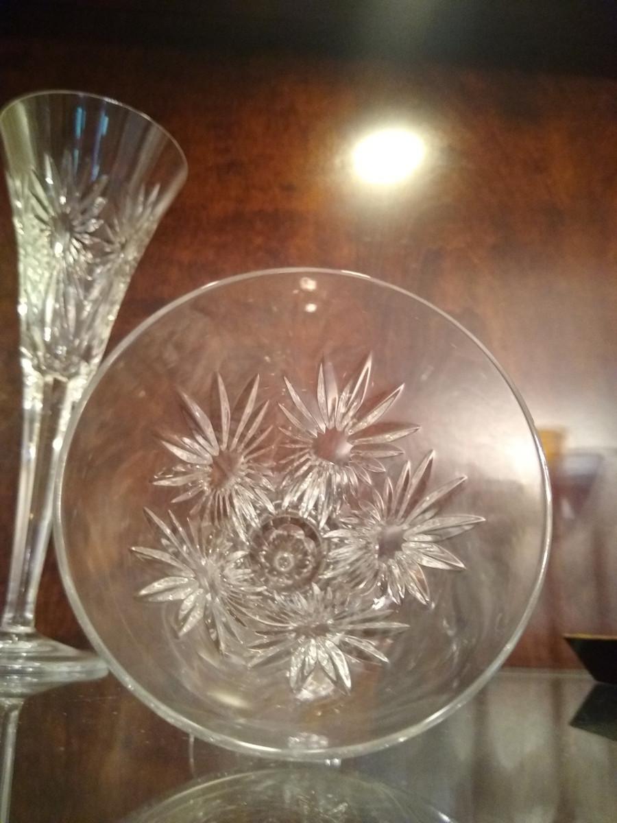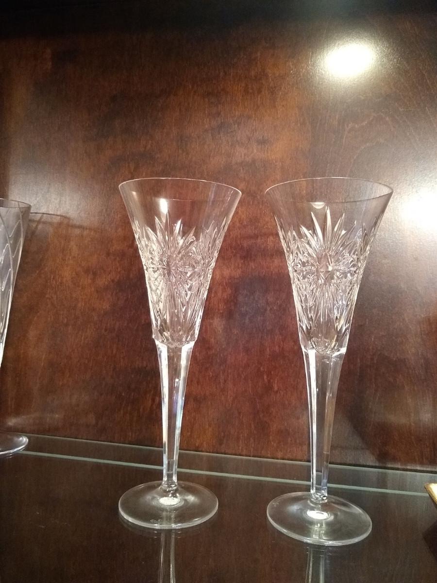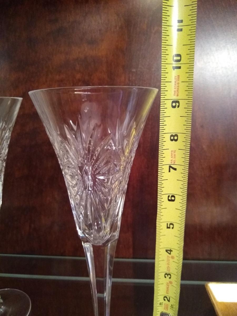 Pair of Waterford Crystal Champagne Glasses- Sunburst Type Design- Approx 9 1/4" Tall