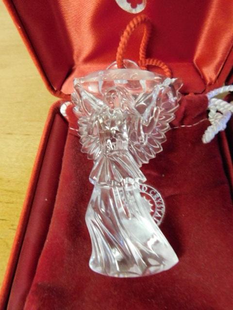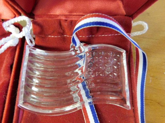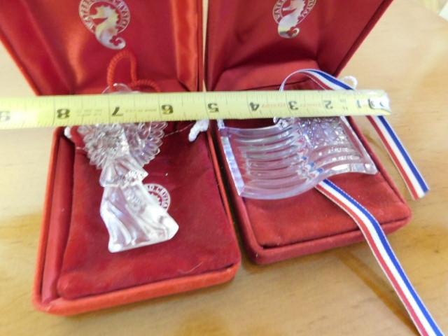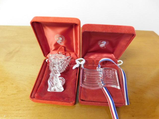 Pair of Waterford Crystal Ornaments Angel and American Flag in the Box