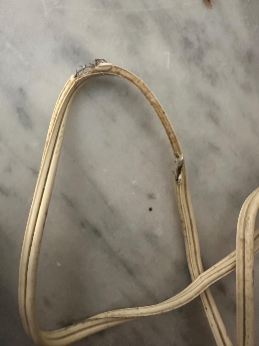 One lamp has been tested and powers on. The second lamp shows fraying to the cord and has not been tested, see photos.