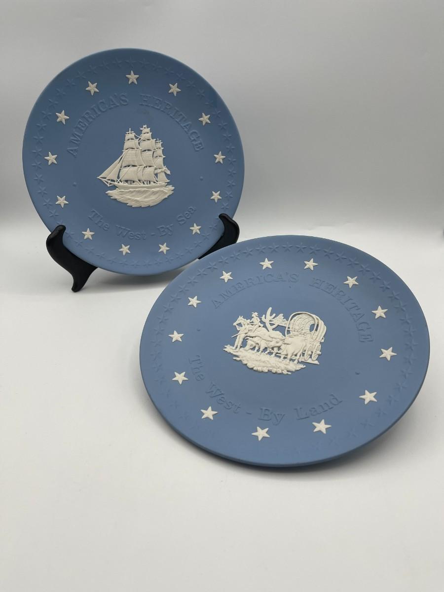 Pair of Wedgwood Jasperware Decorative Plaques, "American Heritage" Series