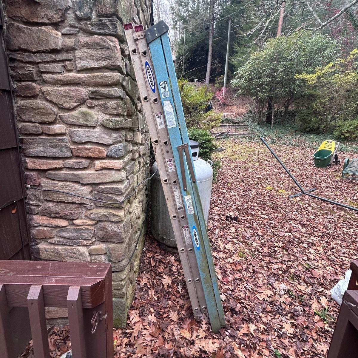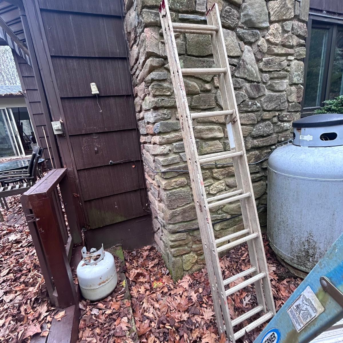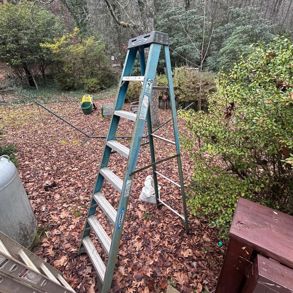 Lot includes an 8’ fiberglass ladder and a 16’ aluminum ladder. Both have some algae build up but should clean up easily. They both seem sturdy and safe for use. Local pick up only.