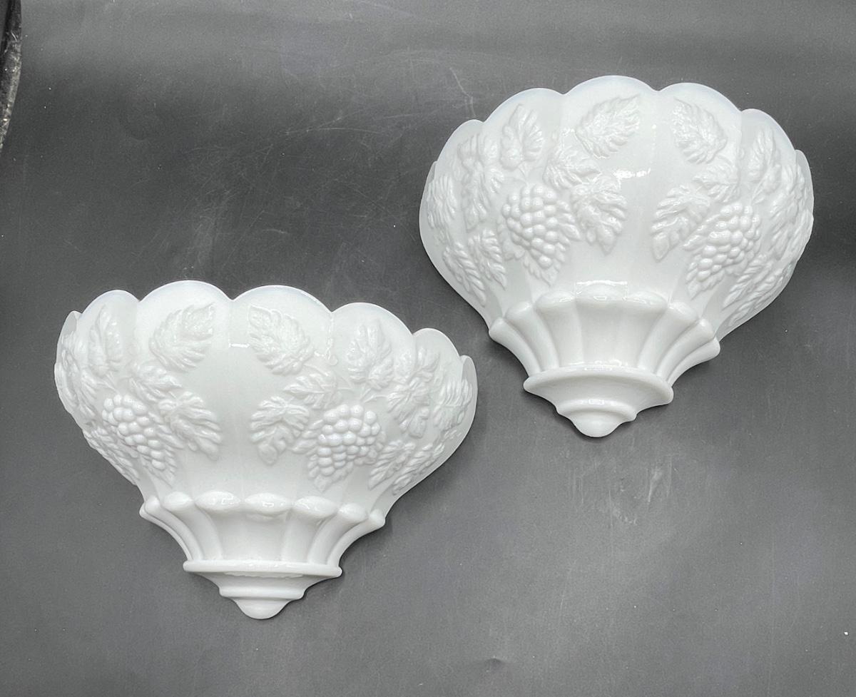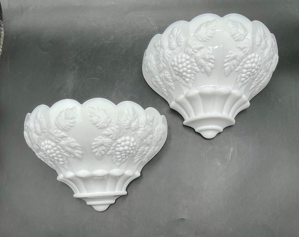 Pair of Westmoreland Wall Sconces Milk Glass with grape bunch decorations