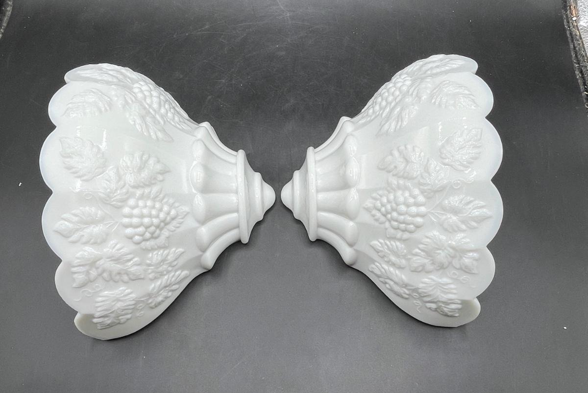 Pair of Westmoreland Wall Sconces Milk Glass with grape bunch decorations