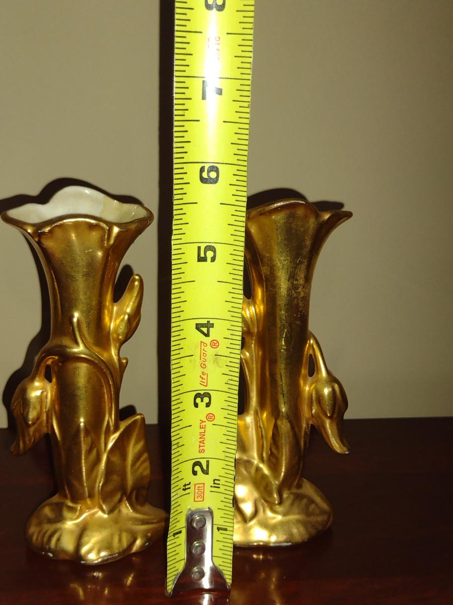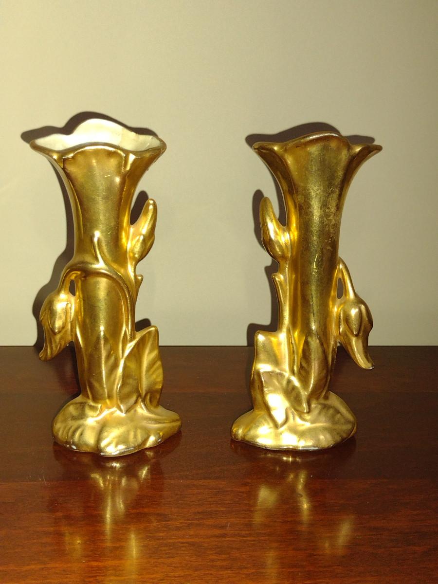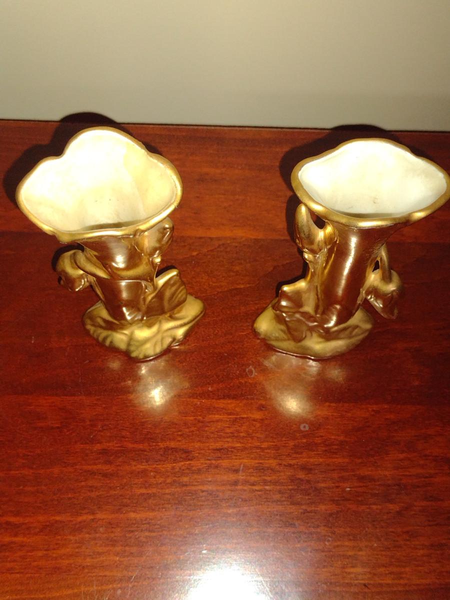 Pair of Wheeling Gold China Vases- Approx 5 1/2" Tall