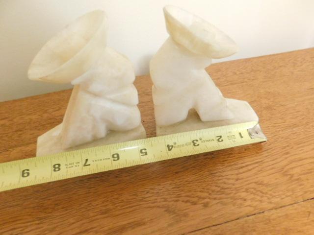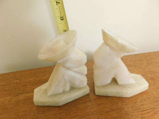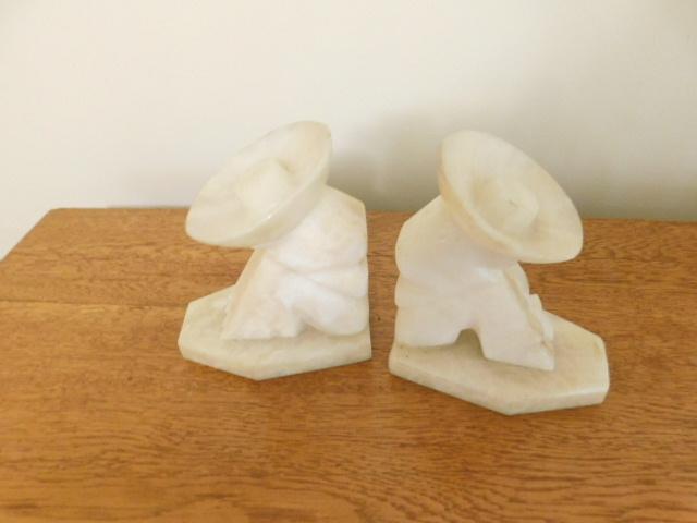 Pair of White Hand Carved Marble 'Siesta' Bookends
