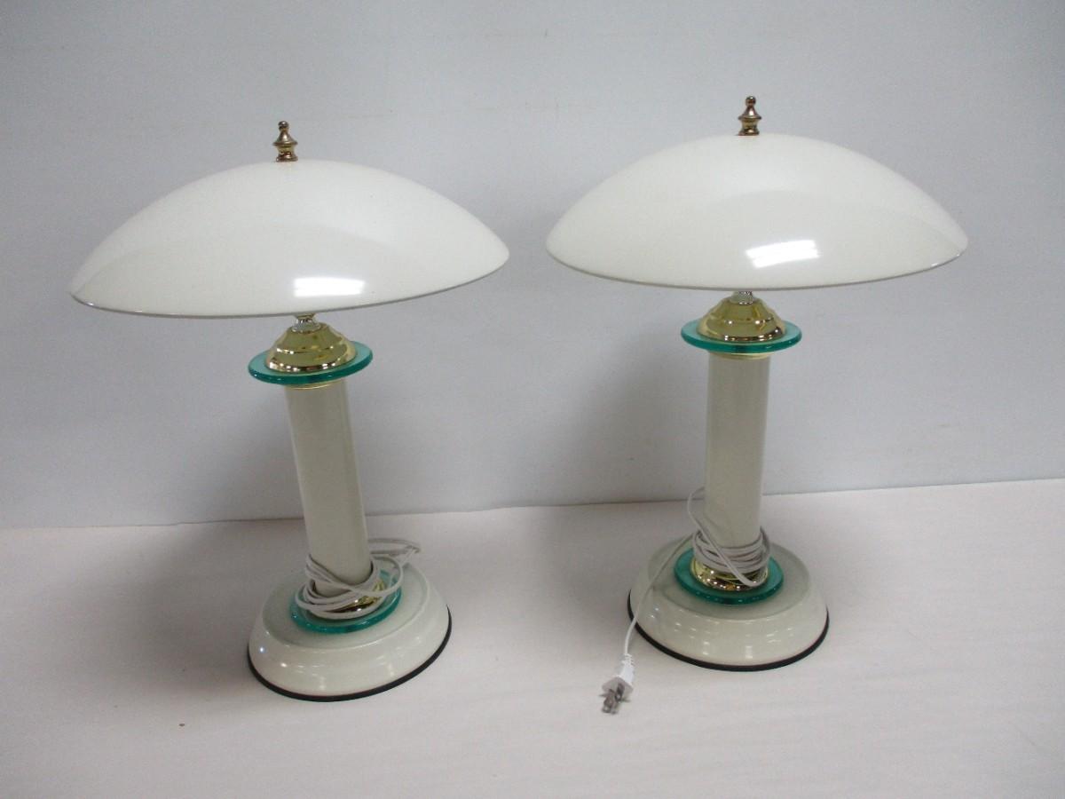Pair Of White Metal Flying Saucer Style Table Lamps  -