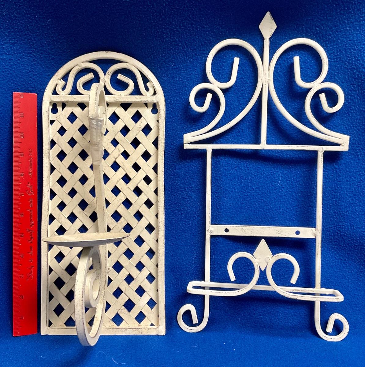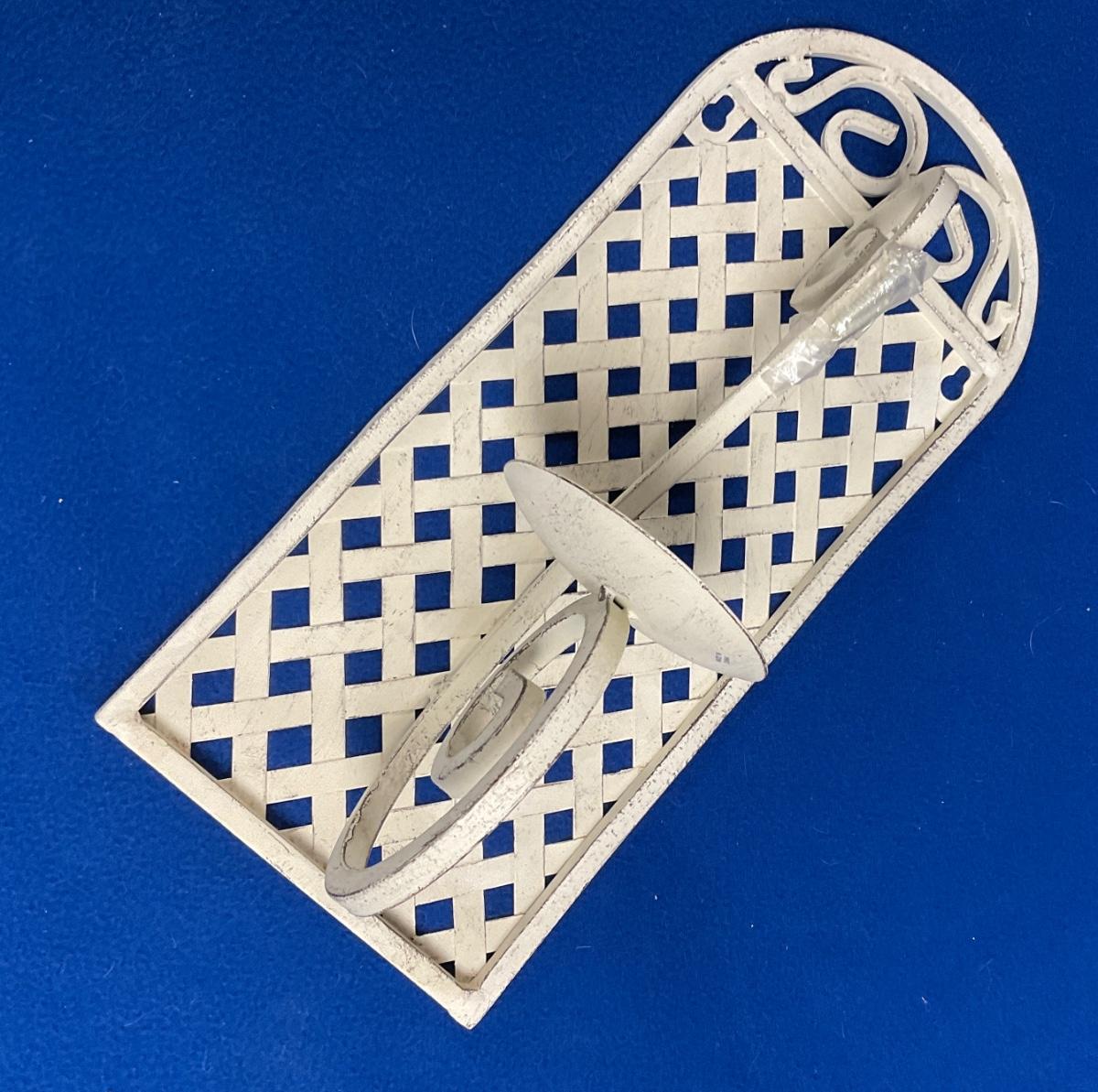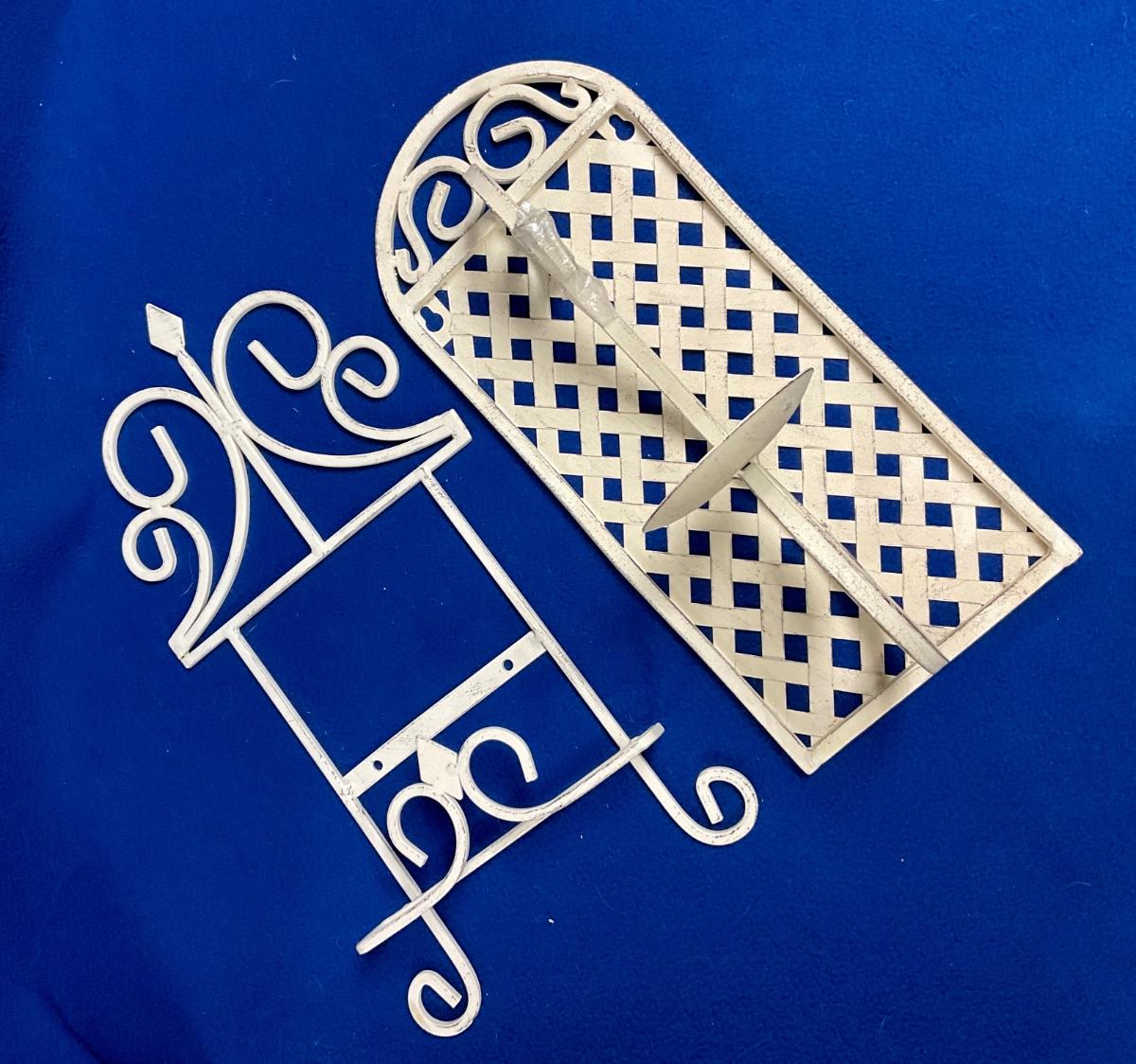 Hanging white metal wall decor. Good condition. Could be painted if desired.