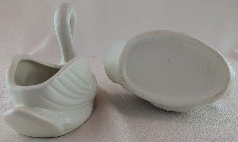 Two ceramic swan measuring 4.75 by 4.75 and 3.75in. wide.