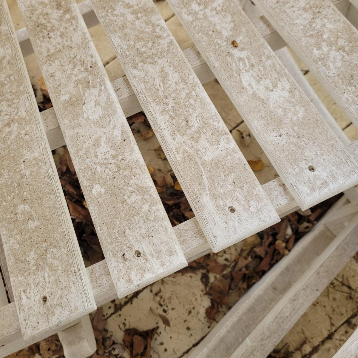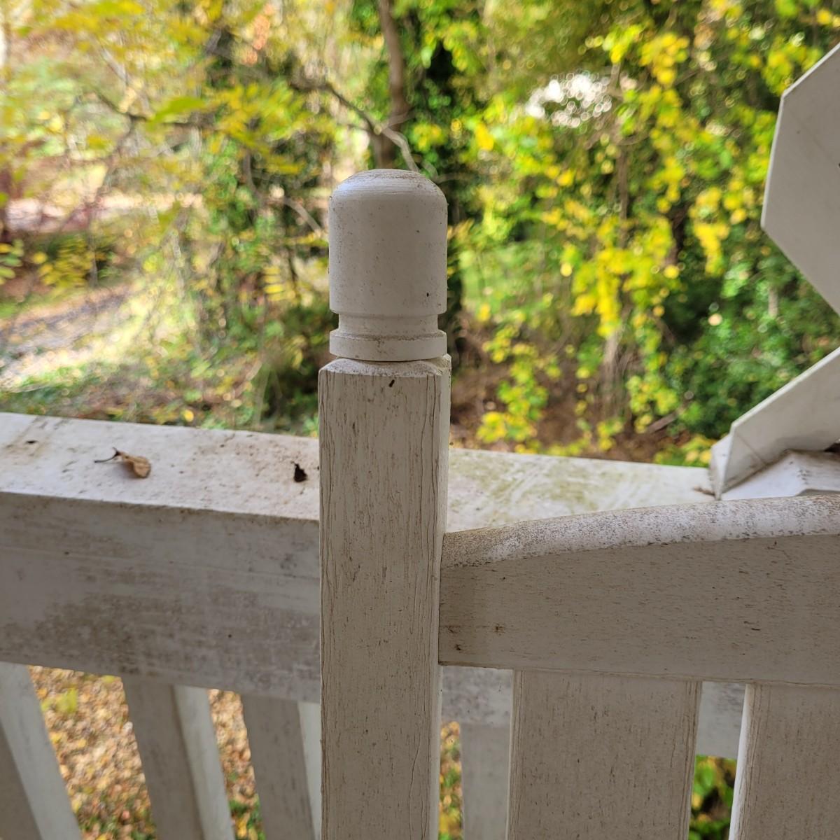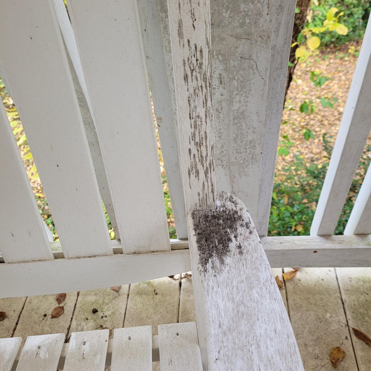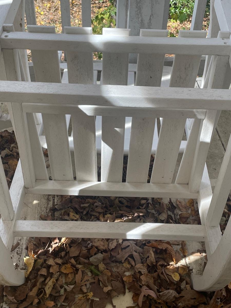 Two very sturdy wooden rocking chairs. All fastenings are securely in place. Accumulation of dirt seems to clean easily. Measure approximately 26"L x30.5"W x44"H, seat height 18.5"H. Local pickup only.