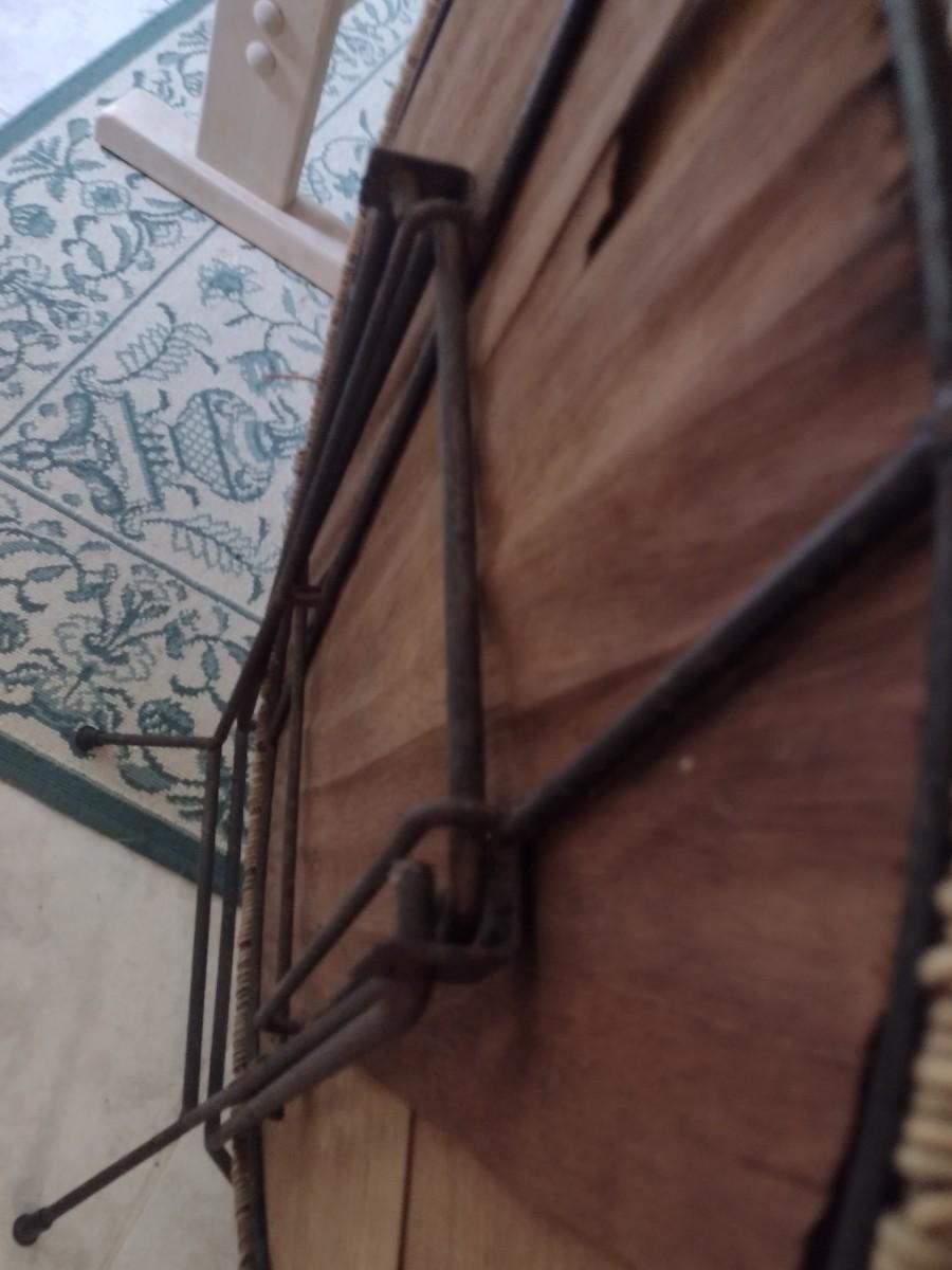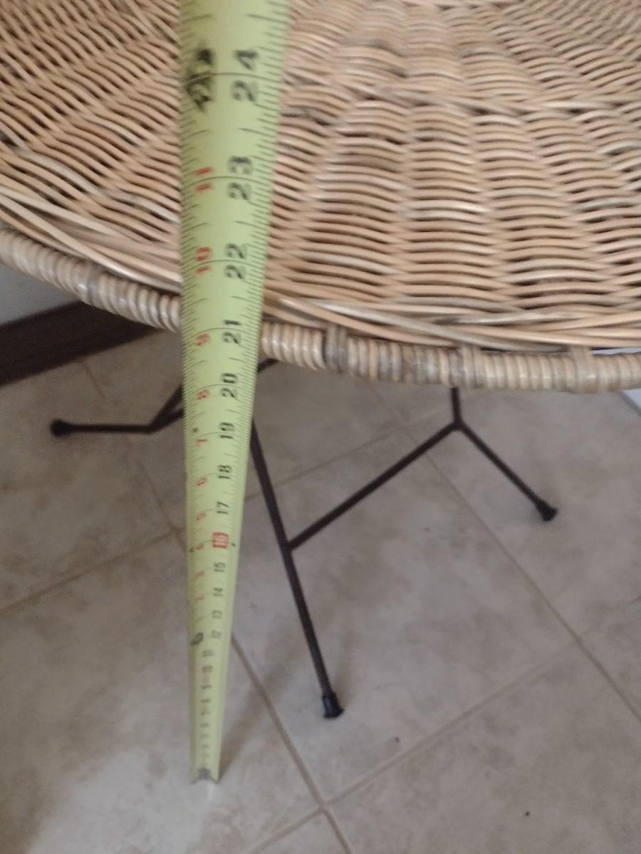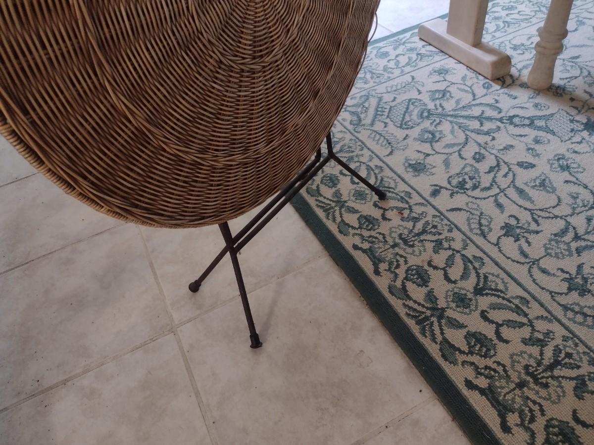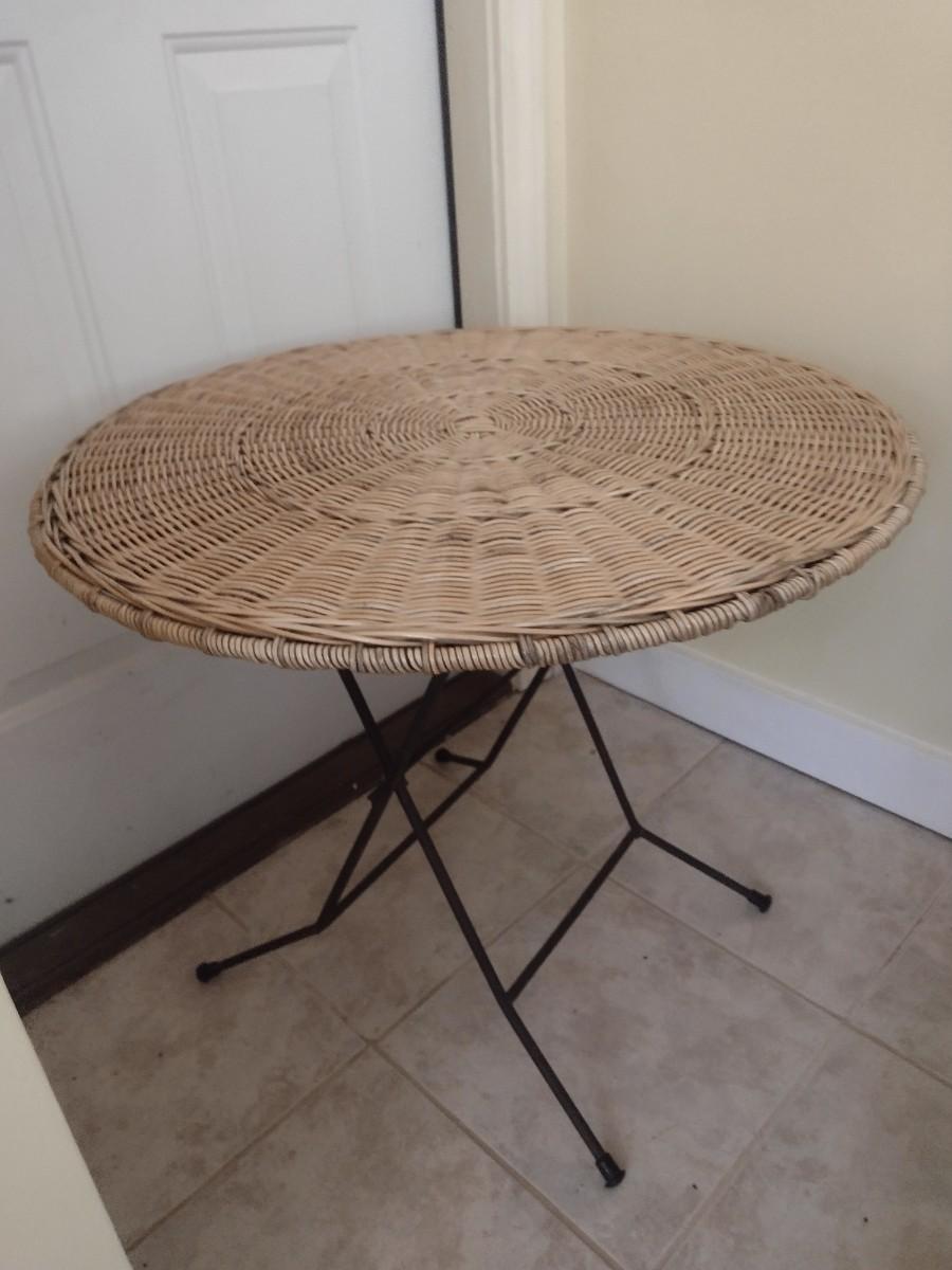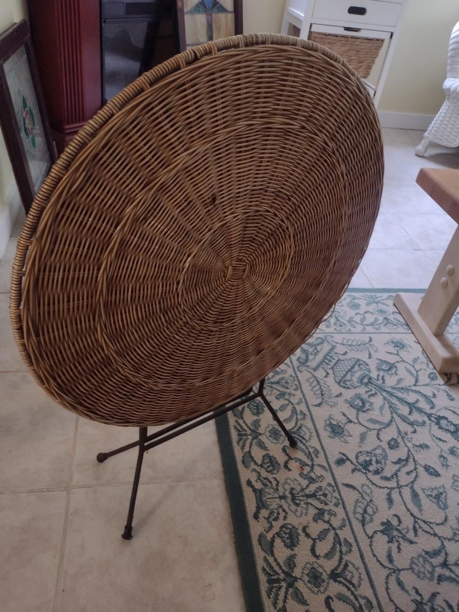 Pair of Wicker Rattan Folding Accent Tables with Wrought Metal Leg Base