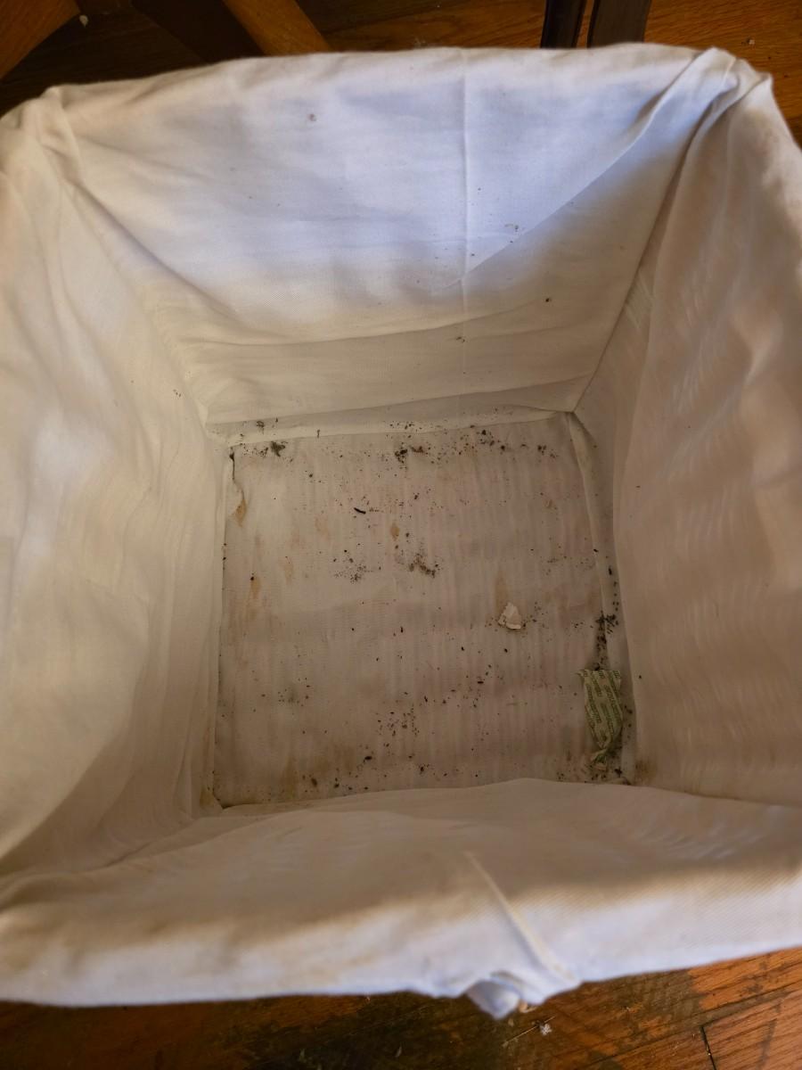 Fabric needs cleaned. One of them is 16 by 14 and 7 inches deep and the other is 13 by 13 and 10 inches deep