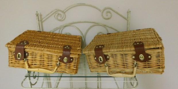Pair of Wicker Weave Picnic or Sewing Baskets