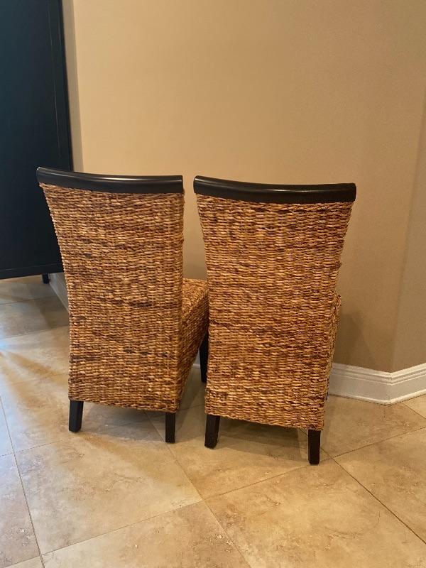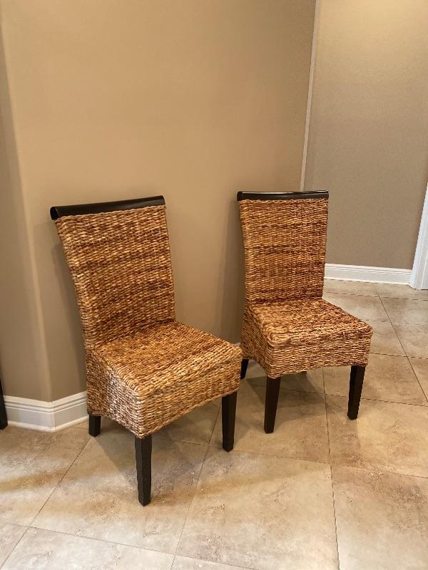 Pair of Wicker/Rattan Chairs with A Wood Top Accent