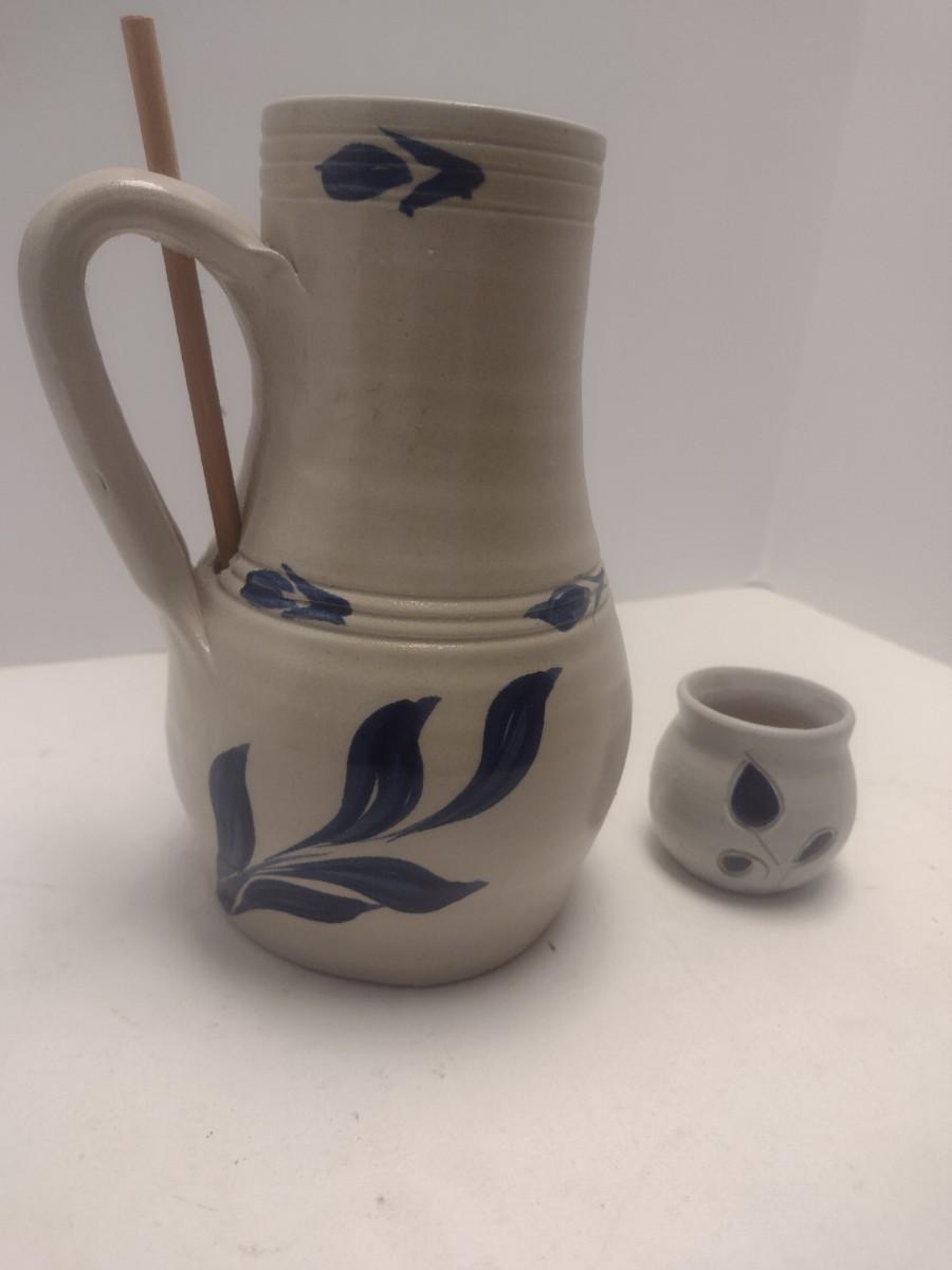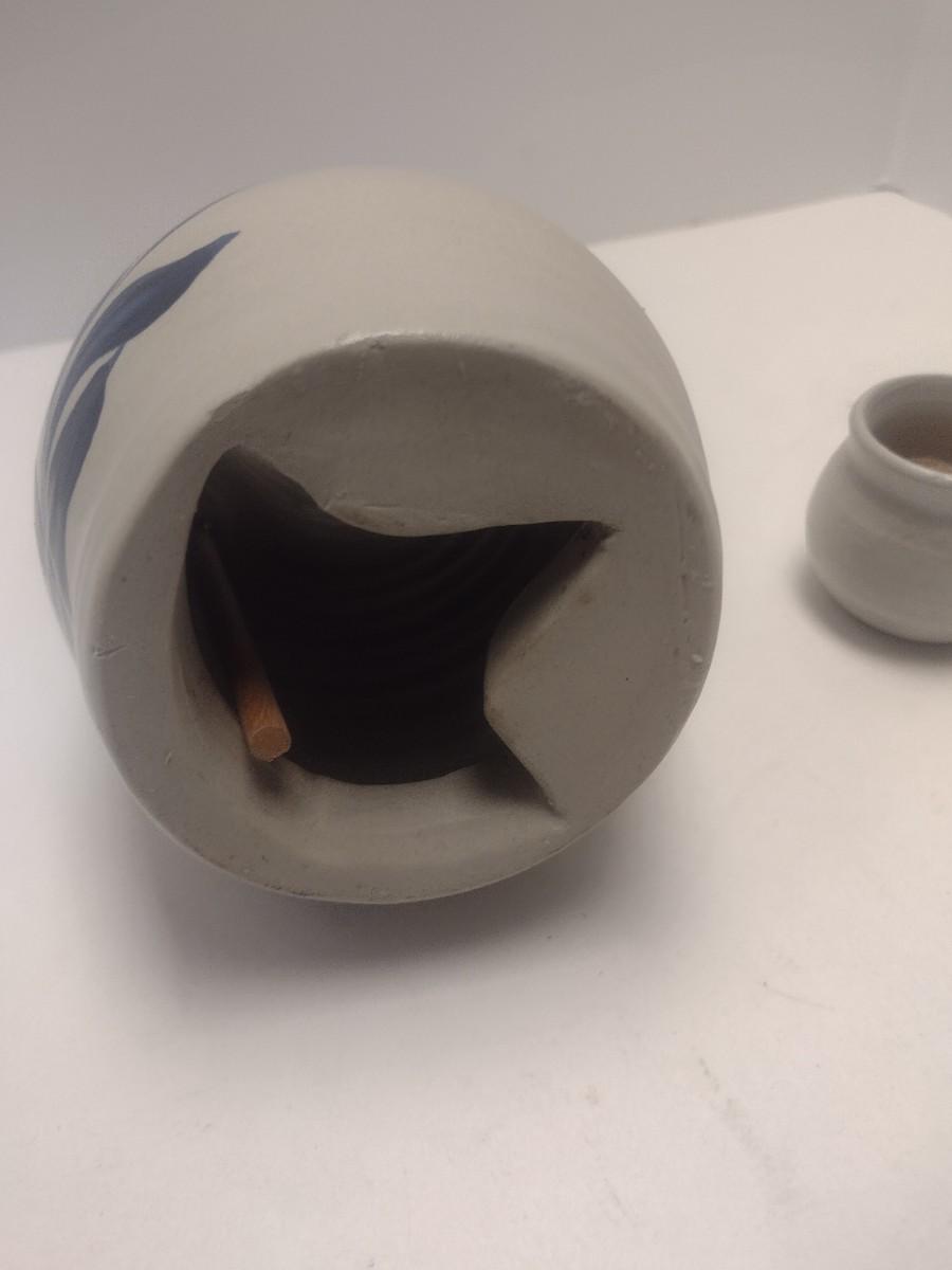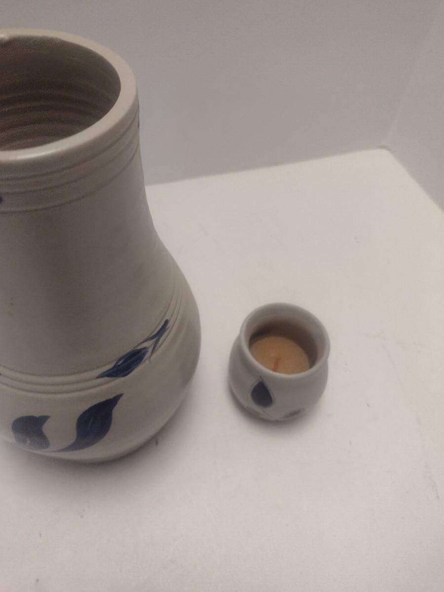 Pair of Williamsburg Pottery Bird Bottle and Tea Light Cup