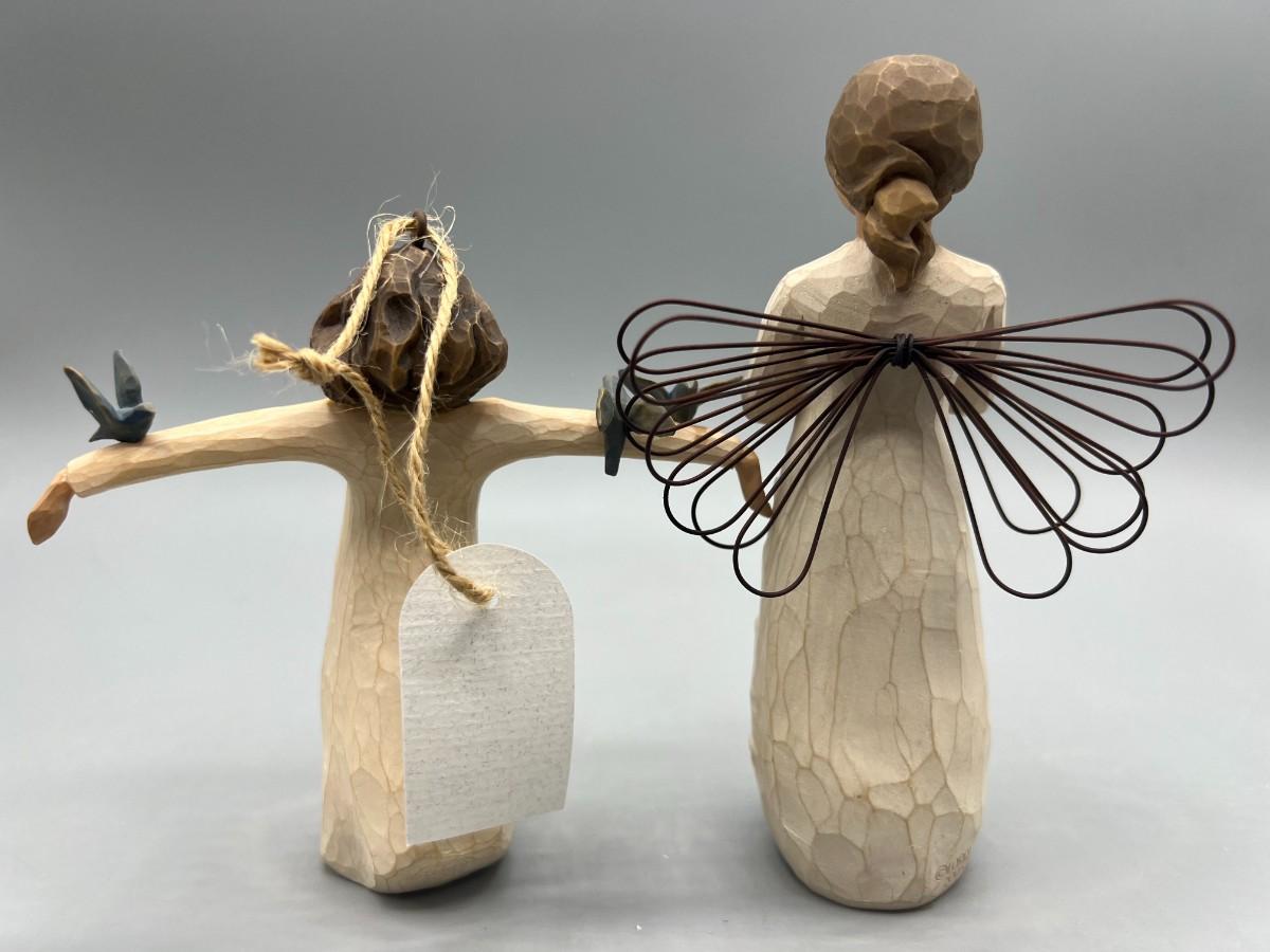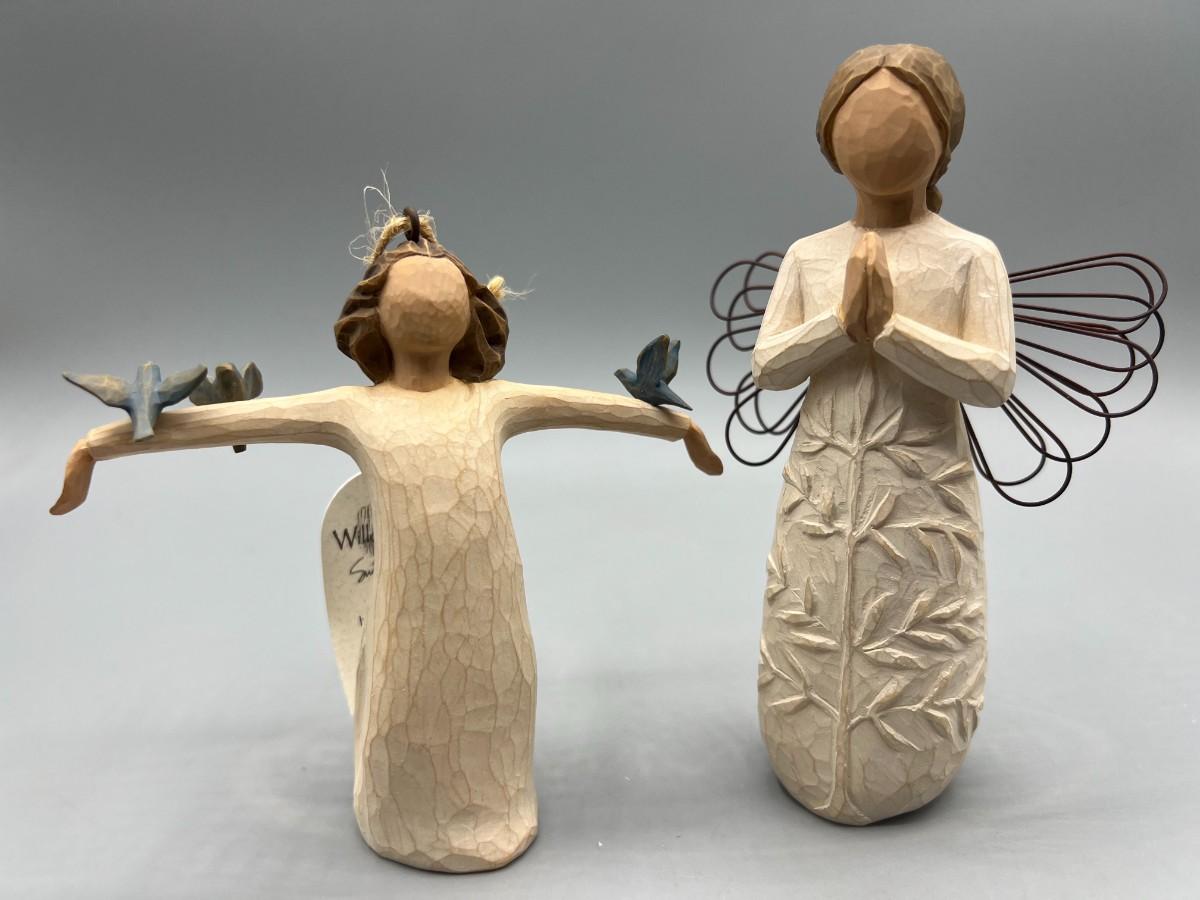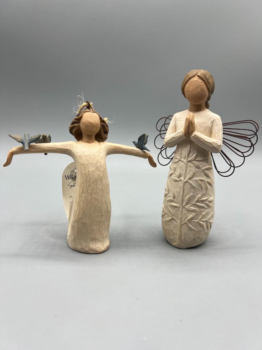 Pair of Willow Tree Demdaco Happiness & A Tree, A Prayer Angel Statuette Figurines