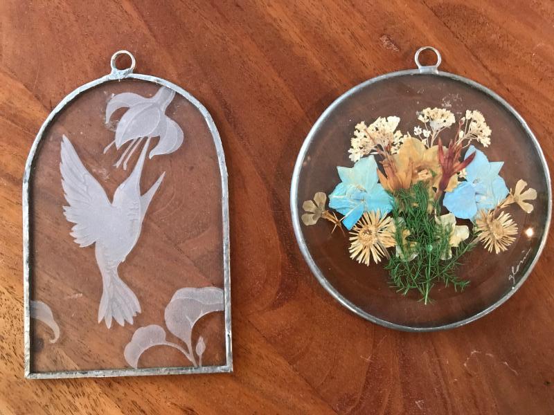 Etched Glass and Pressed Flower Window Ornaments [1228]