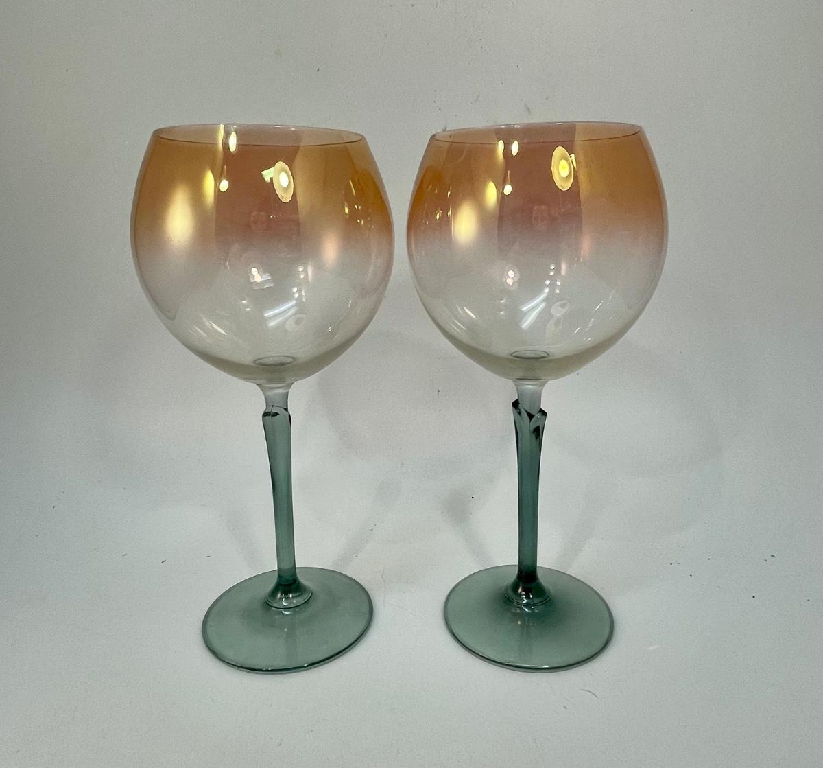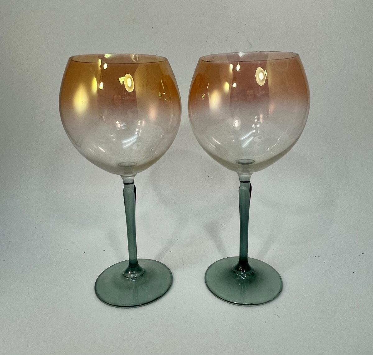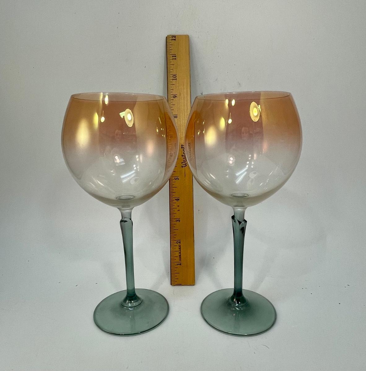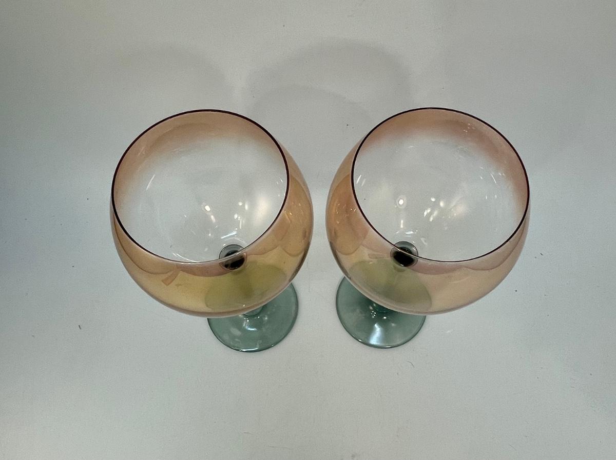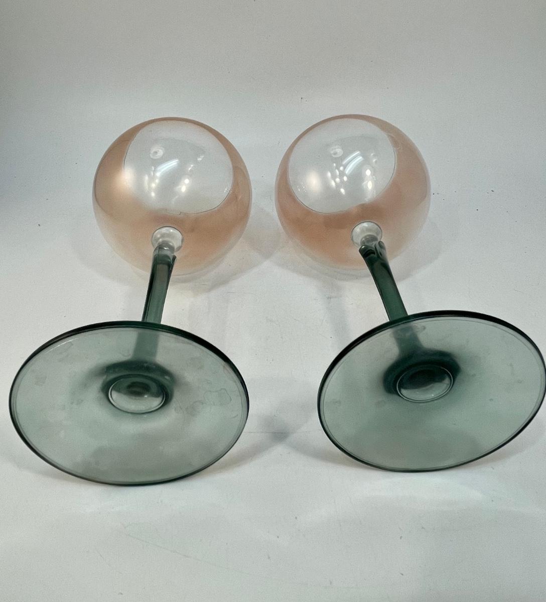Pair of Pink and Green Glass Wine Glasses Stemware