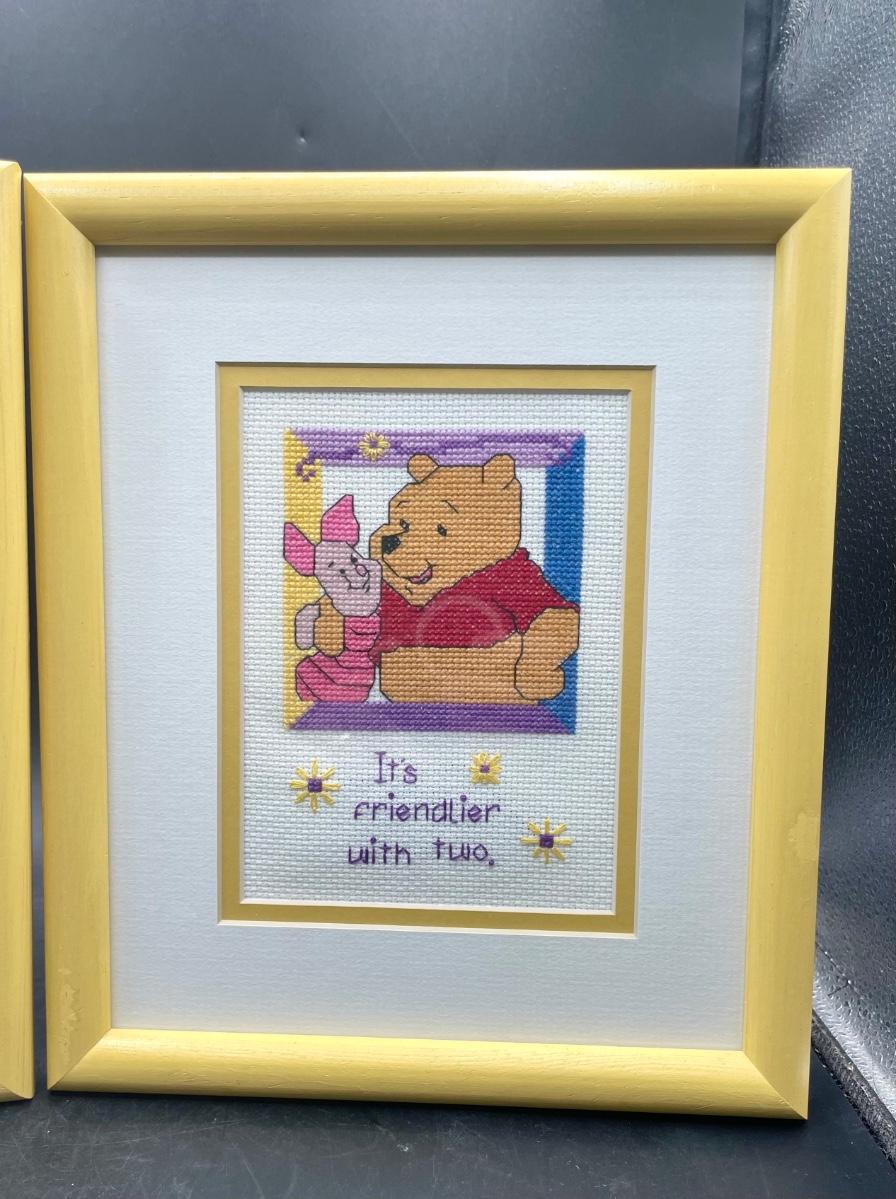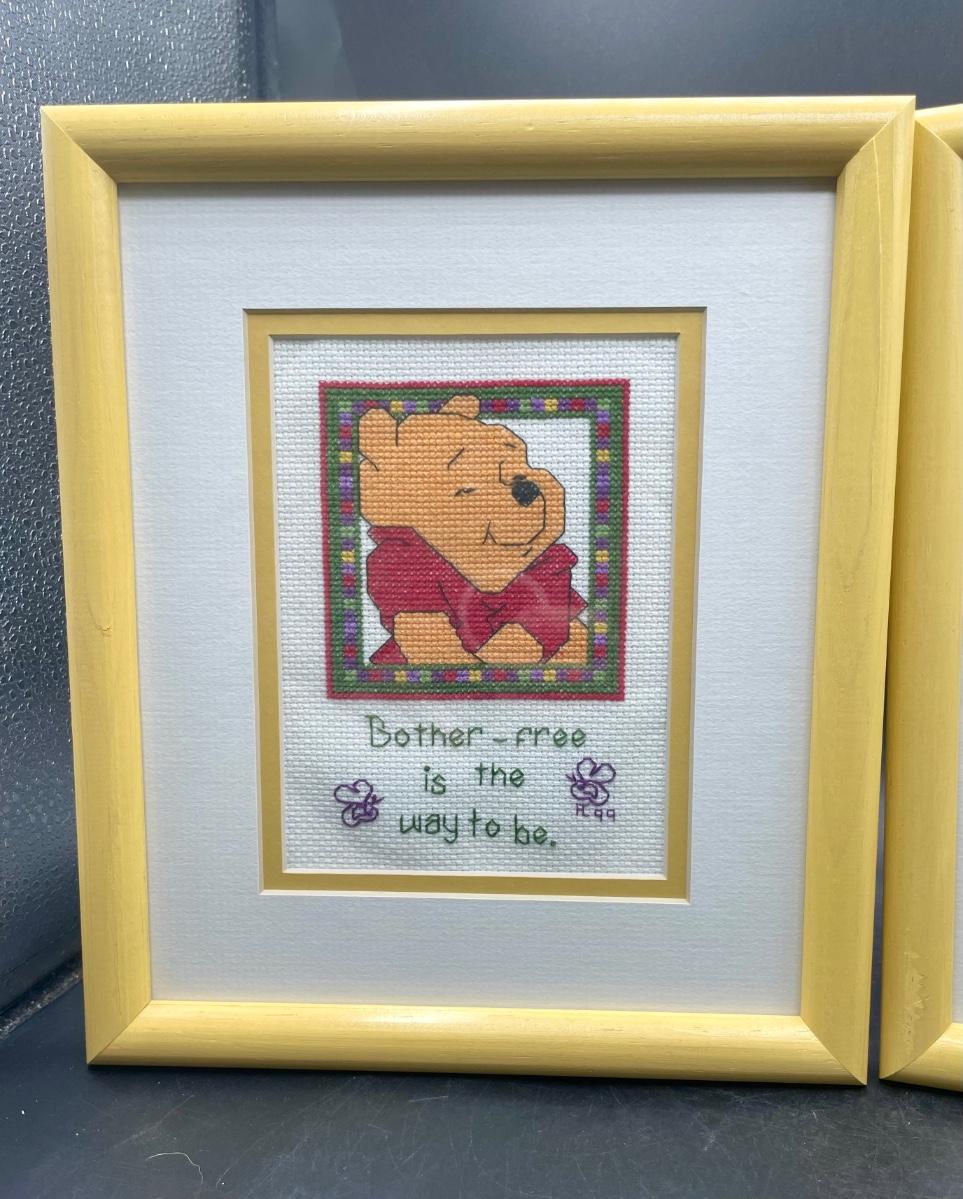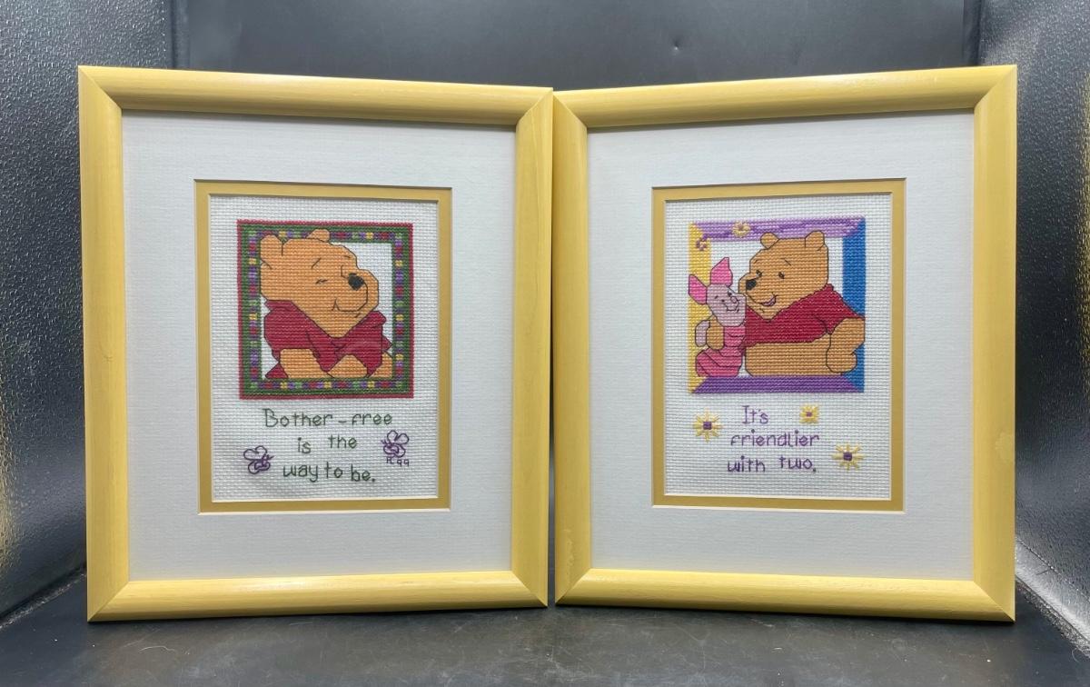Pair of Winnie the Pooh Framed Cross-Stitch