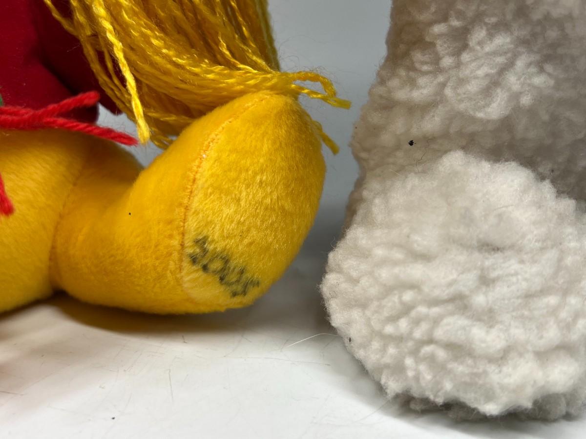 Has not been tested with new batteries, there are no significant rips or tears to the plushies and is in good collectible condition. Check pictures for more details and for sizing.