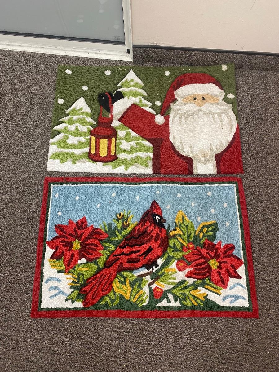 Pair of Winter Holiday Christmas Door Mats Santa Claus Cardinal